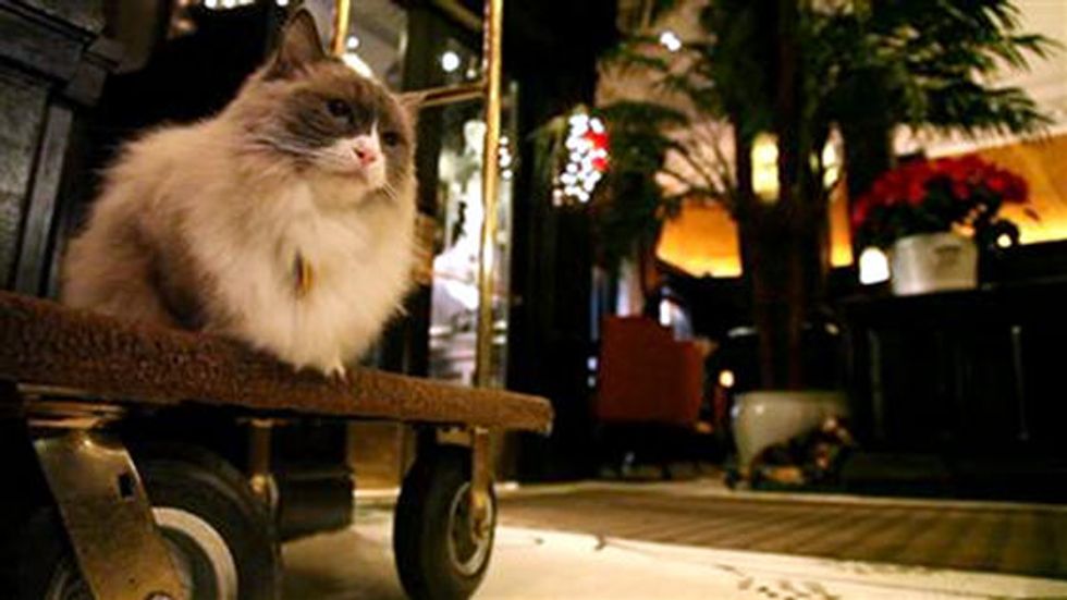 Matilda, a regal Ragdoll cat, is a revered and loved staff member at the Algonquin Hotel in New York City. She is very popular with their guests. "She has the run of the house (except in dining areas and the kitchen) but prefers to oversee the comings and goings of the many guests who cross her threshold," said the hotel.