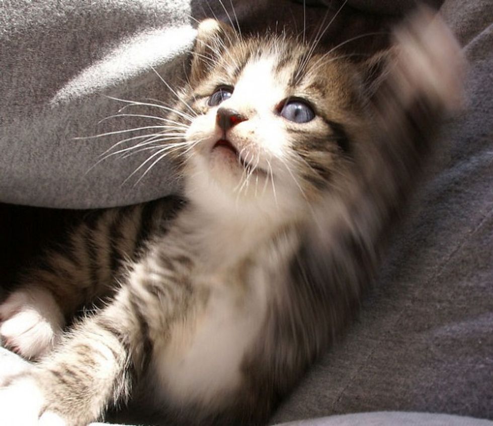 The next morning Fred set up a trap and baited it, hoping to catch all the kittens and bring them to safety. Those squirmy little ones wouldn't stay under the bushes. Afraid that they would wander out into the parking lot, Fred snatched them up and brought them home. Eventually the cat mother was found and taken to the vet. Unfortunately she was very sick and was not able to make it, but all her babies survived.
