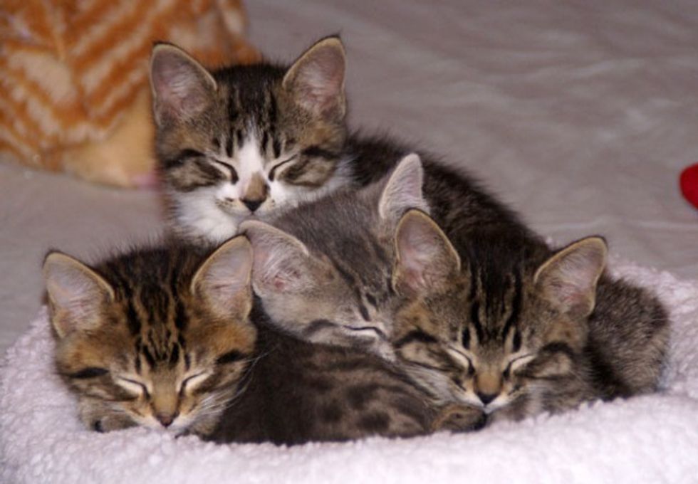 Four tabby kittens were found under a bush near the office where Fred Anderson works. "They came to us on March 16th (2010) at about 5 weeks old," said Robyn Anderson, a rescuer and foster parent for Challenger’s House in Toney, Alabama