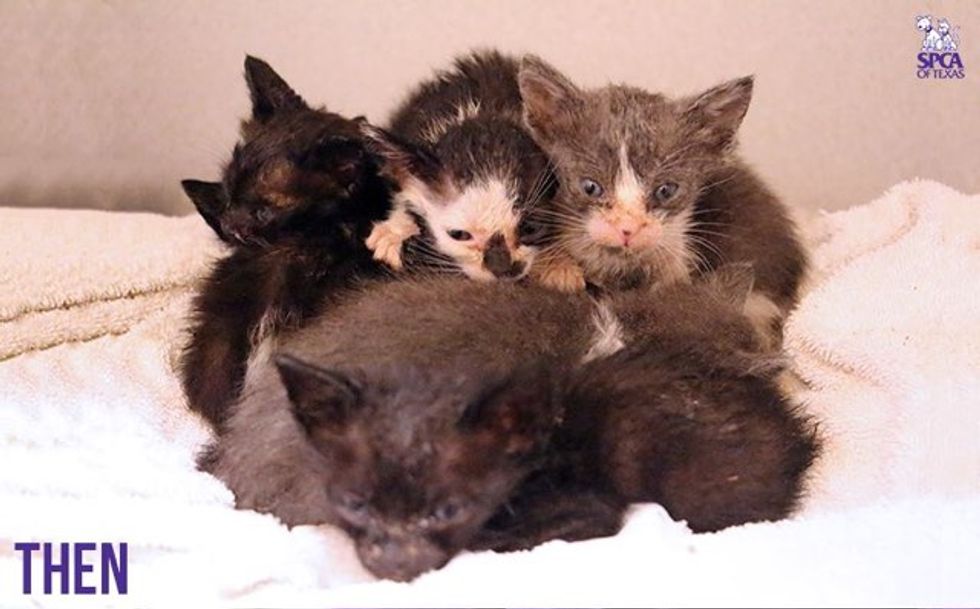 These five tiny furballs weighed less than a pound when they came to the SPCA of Texas. Look at their amazing transformation in a few weeks.