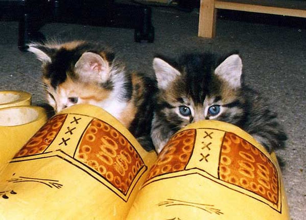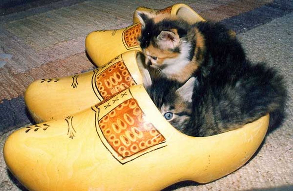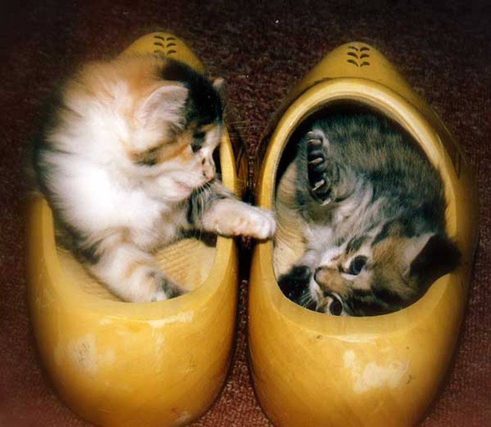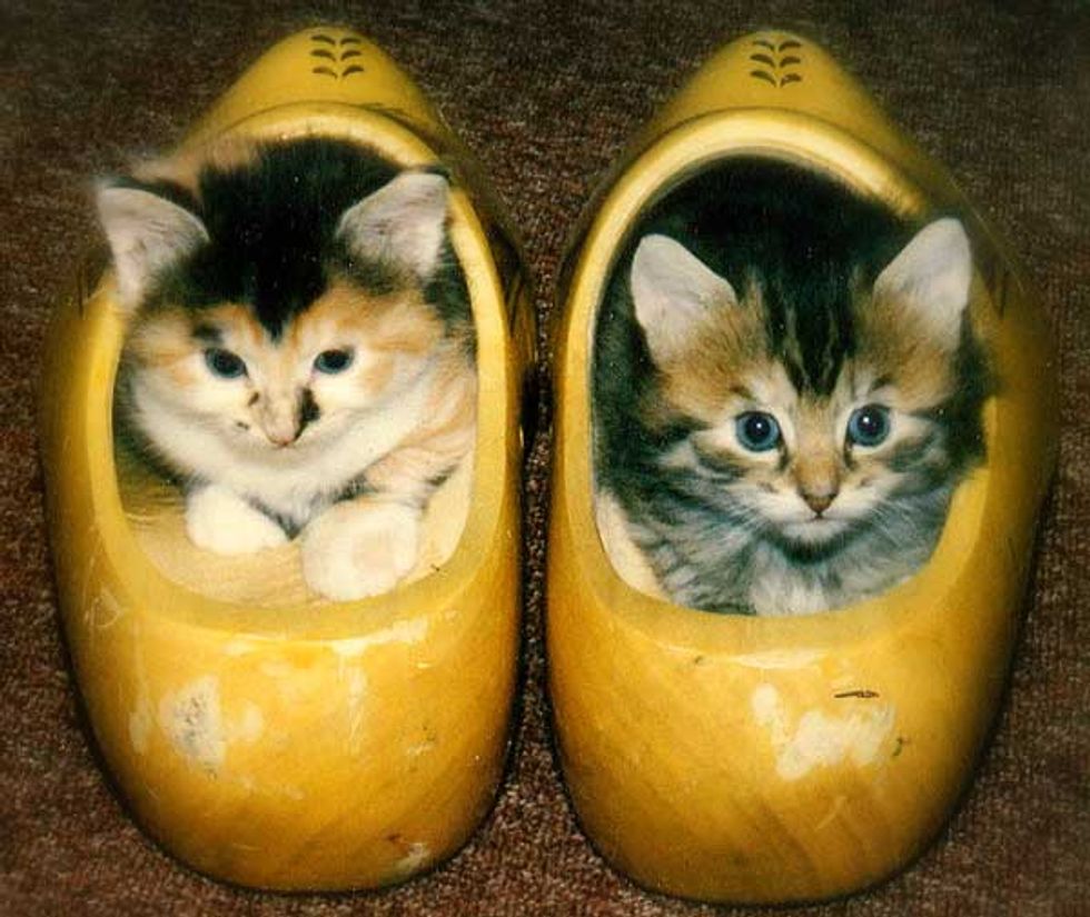 These two buddies just discovered their humans' clogs and have claimed them as their own.