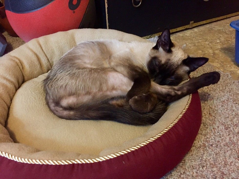 "First day back she got comfy in the bed I picked for her. She slept a lot the first few days, only waking to eat and then go back to her soft new bed to sleep."