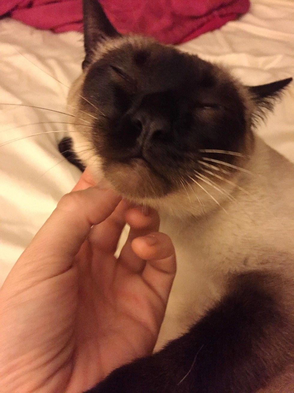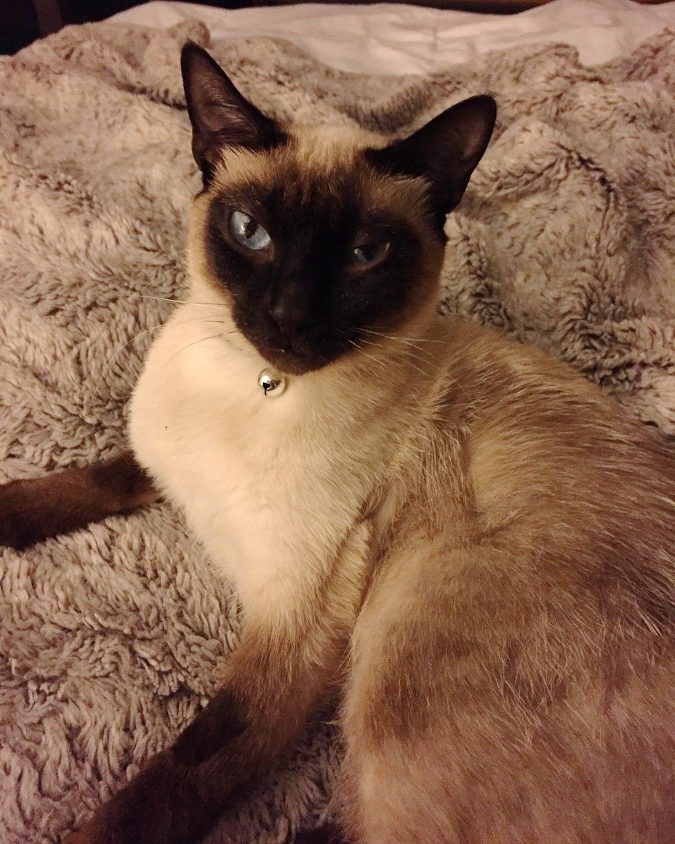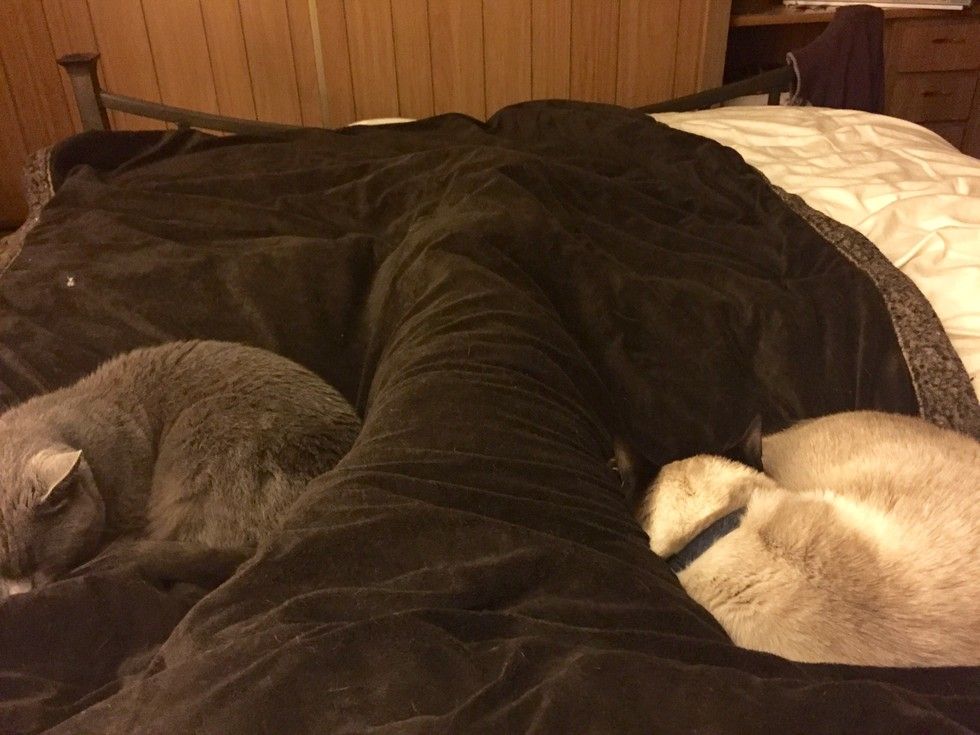 She and their other cat Meems share the same bed with their human.