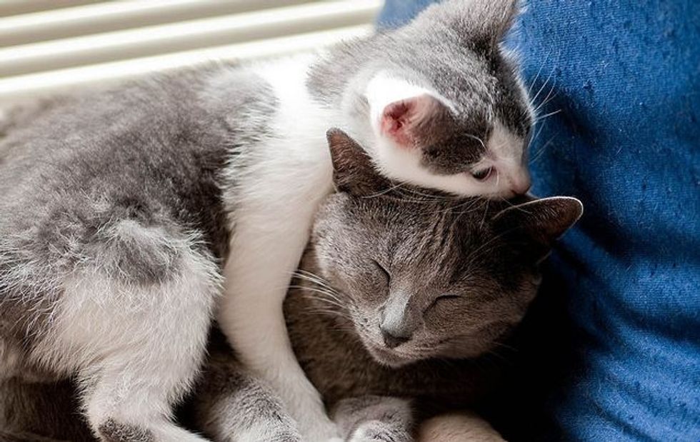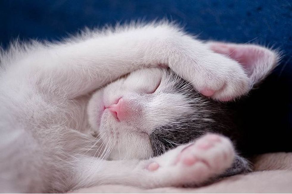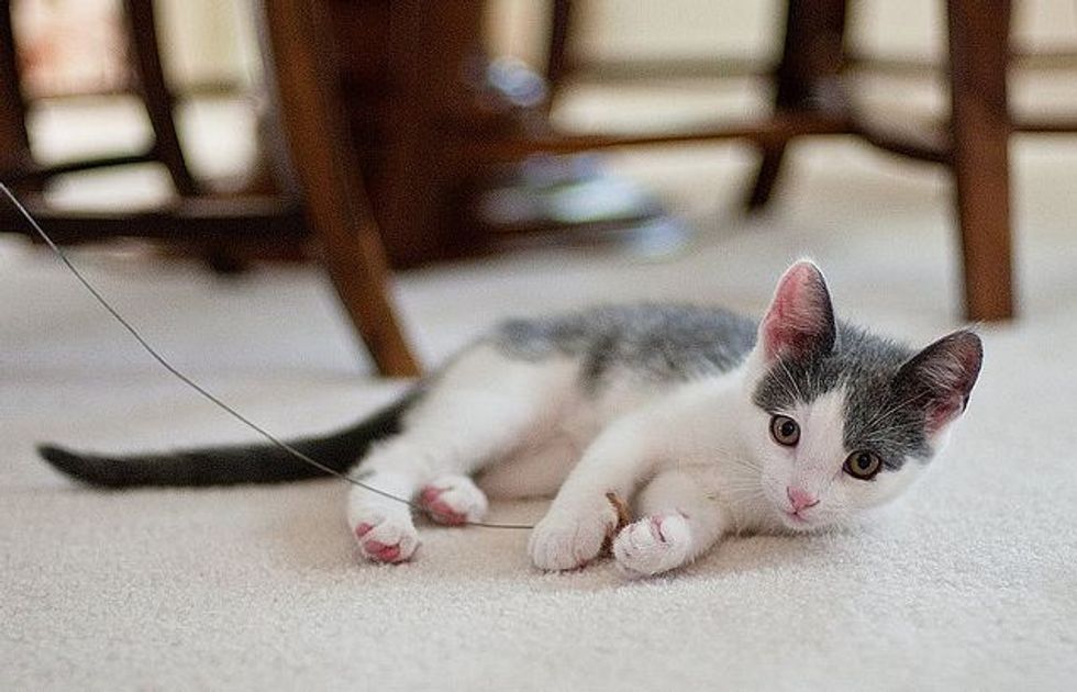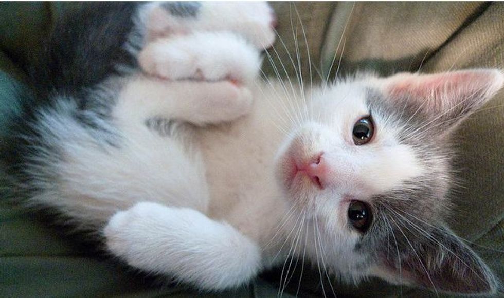 Oddly enough, I began to have a recurring dream of a kitten. Not random kittens, but a grey and white one with a marking in its fur that resembled a heart. Over and over I had this dream... so much so I mentioned it to the spouse who joked that if I saw a grey kitten, I would at least have to think about getting it. In that same time frame, an old friend rescued a cat dumped onto her property that ended up being pregnant. I was telling her about this dream since I was so bemused by it and she stopped me, telling me she was sending me a picture. When the picture came up, there was a proud mama cat with a litter of four tuxedo cats in a heap. At the top of the heap was a fifth kitten... a lone grey and white cat.