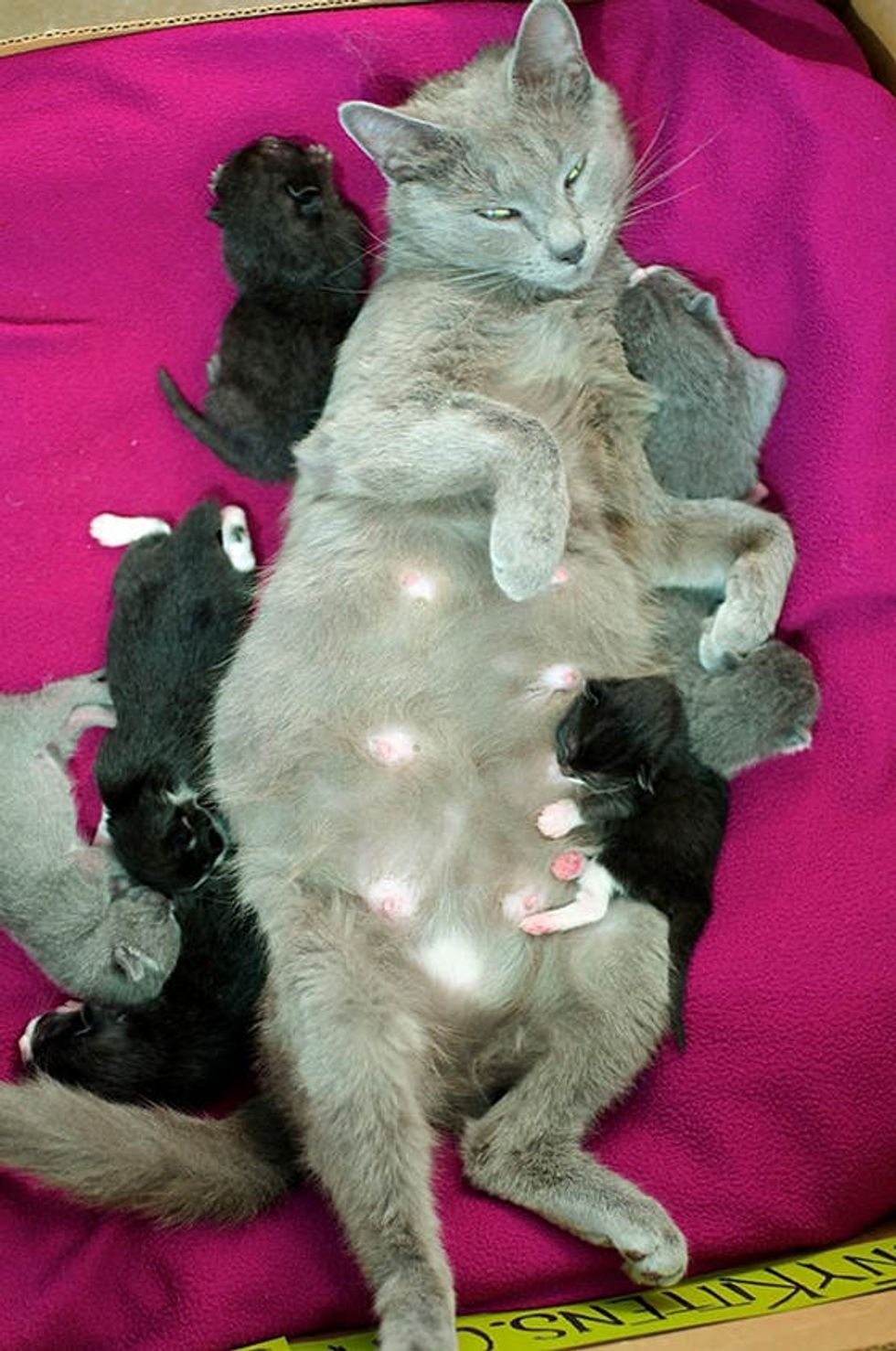 Her belly popped on July 15 and 7 tiny kittens made their debut into the world.
