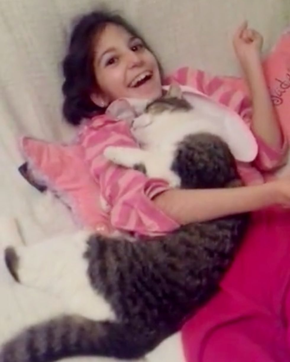 It is the perfect match! "We didn't understand why Lou couldn't find a family, being such a docile and affectionate cat," Lorca Animal wrote. "Now we understand everything. He was waiting for little Laura, that is the name of this wonderful angel, and her mom Isa."
