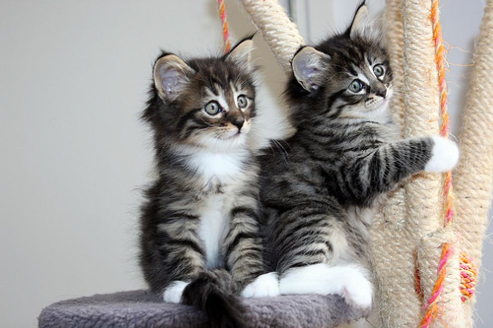 The Norwegian Forest Cat has a beautiful, thick, luxurious, water-proof double layered coat. They are fluffy from tip to toe with tufts of hair around the ears and in between their toes. Their tail is bushy like a huge brush. They use it to wrap around them when they sleep to prevent getting cold from the weather.