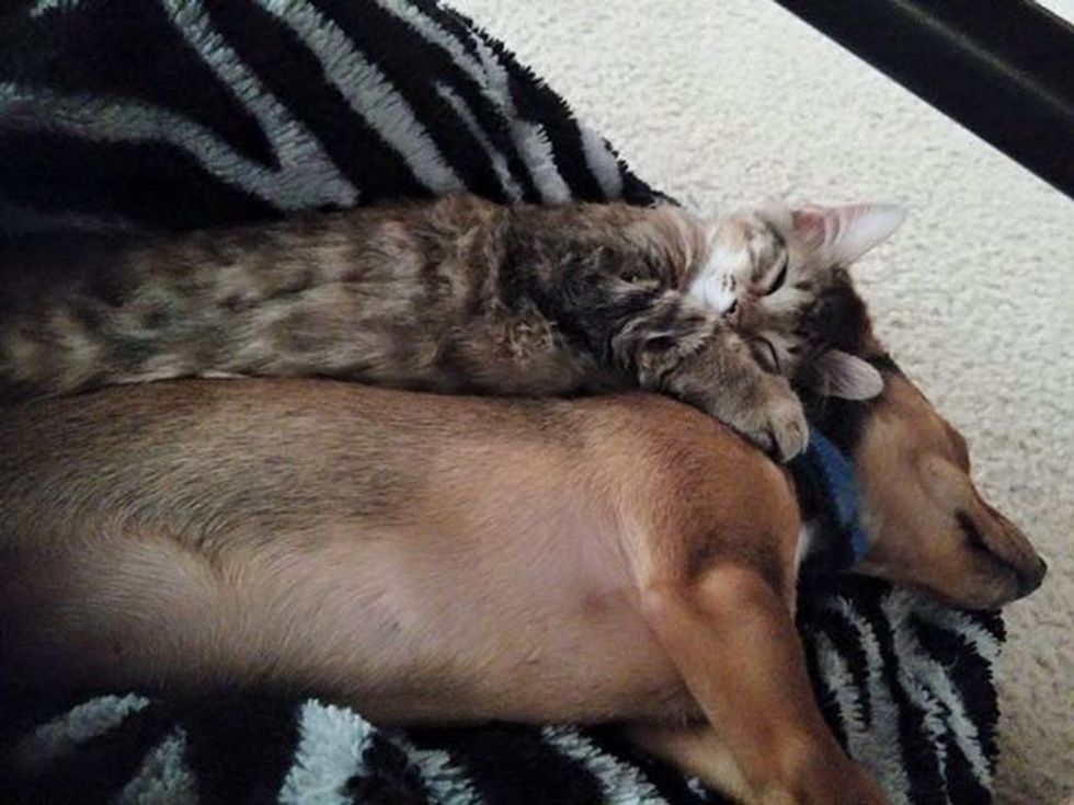 Meet Chip (puppy) and Adele (kitten), two rescue orphans, who found each other at the shelter back in March. They have been inseparable since.