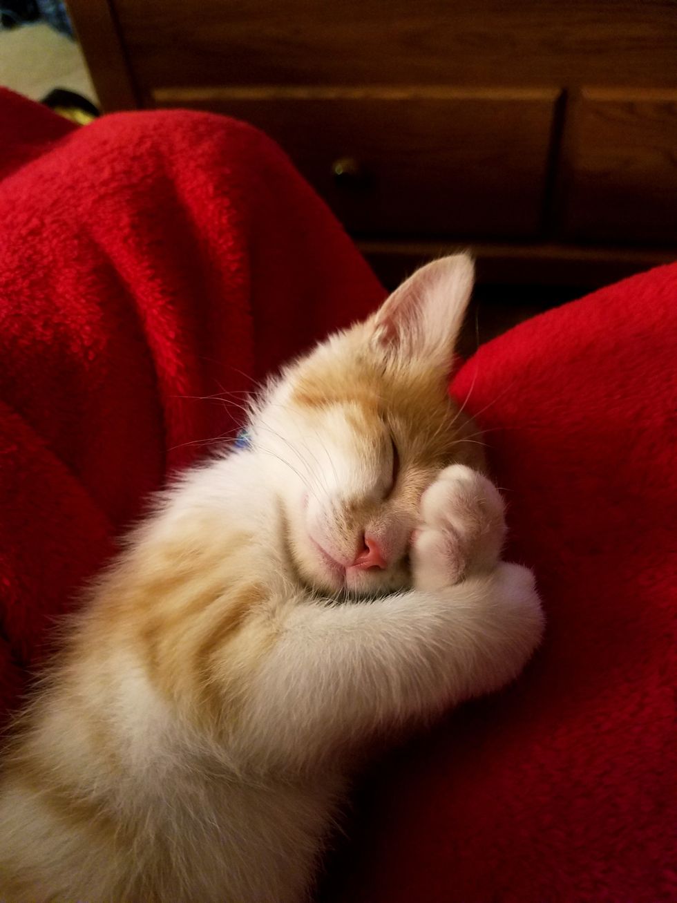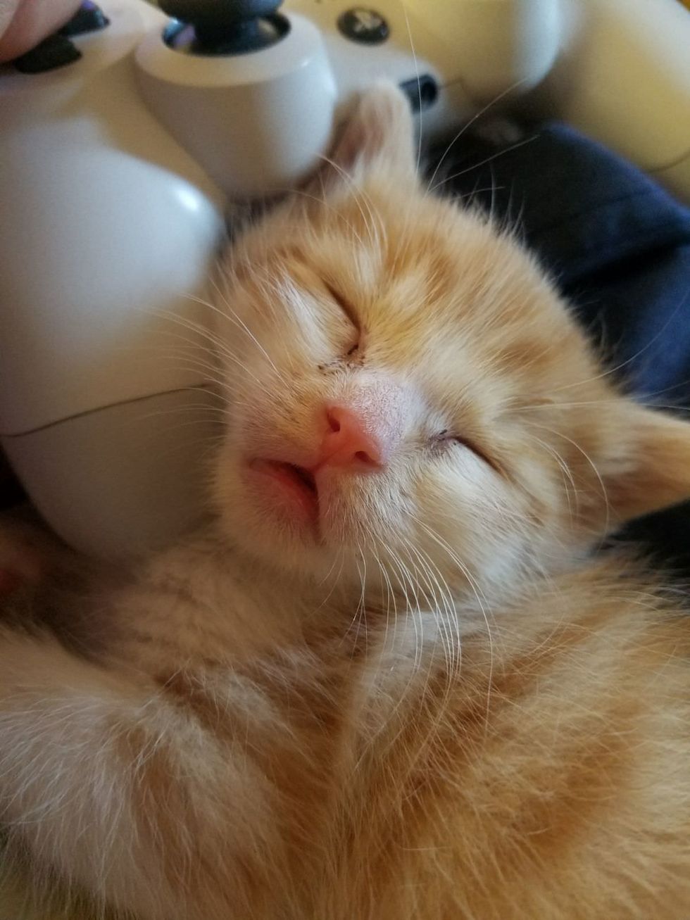 Despite having never fostered a kitten, she couldn't let that happen to the little guy and immediately offered to take him. "Having lost my cat of 18 years a few years before, I was ready for a new fur baby."