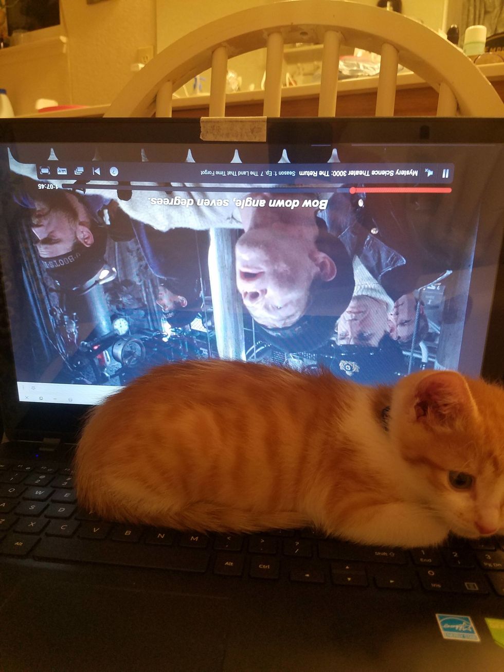 "He learned that computers are warm and steal attention. So he decided to flip my screen upside down."