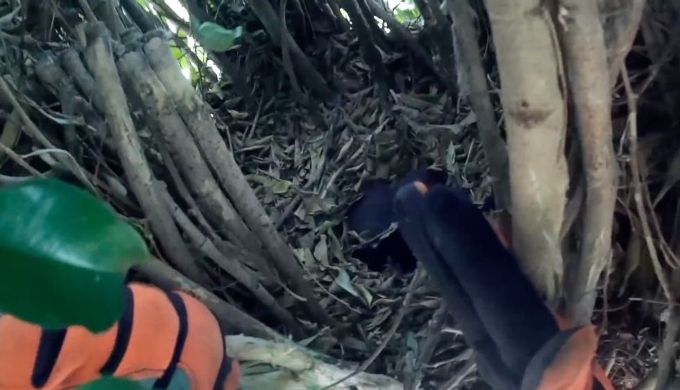 They received a call about crying kittens trapped in a tree. One of the rescuers, Nav, was dispatched to the area right away. "When Nav arrived, the tree was merely 10 feet tall," the rescue group wrote on Facebook.