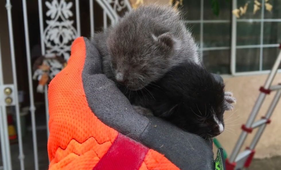 Two tiny kittens were rescued from an unusual place. They were discovered in a nest in a tree, and their mother was nowhere to be found.
