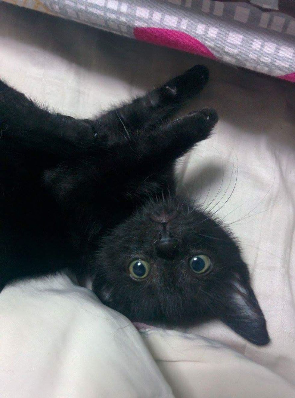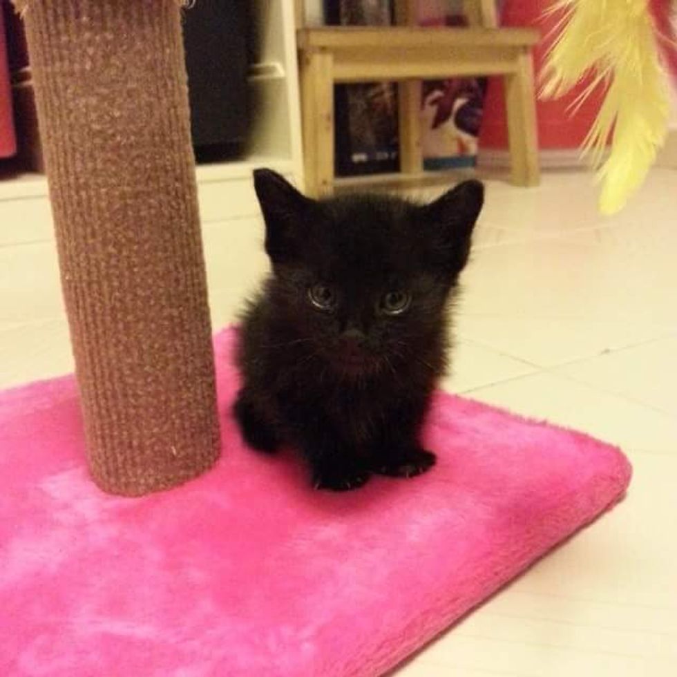 The little roadside kitten is now a beautiful black panther kitty who loves to talk.