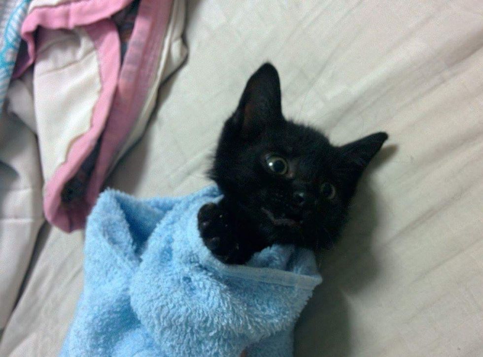 "She was quite surprised to find such a small kitten all alone in the open. We had suspected that he was abandoned there."