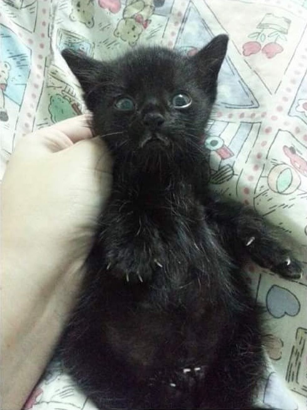 They named him Venom the kitty, and the around-the-clock care commenced. After feeding the kitty every two hours and applying medicine to treat an infection, the little buddy was nursed back to health.