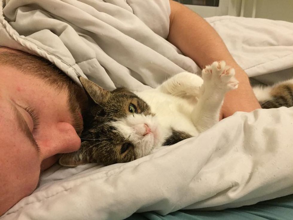 A little special needs cat captured a couple's hearts and changed their lives forever. Ever since they took him out of the shelter, he hasn't stopped cuddling.
