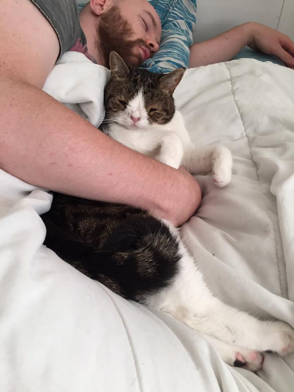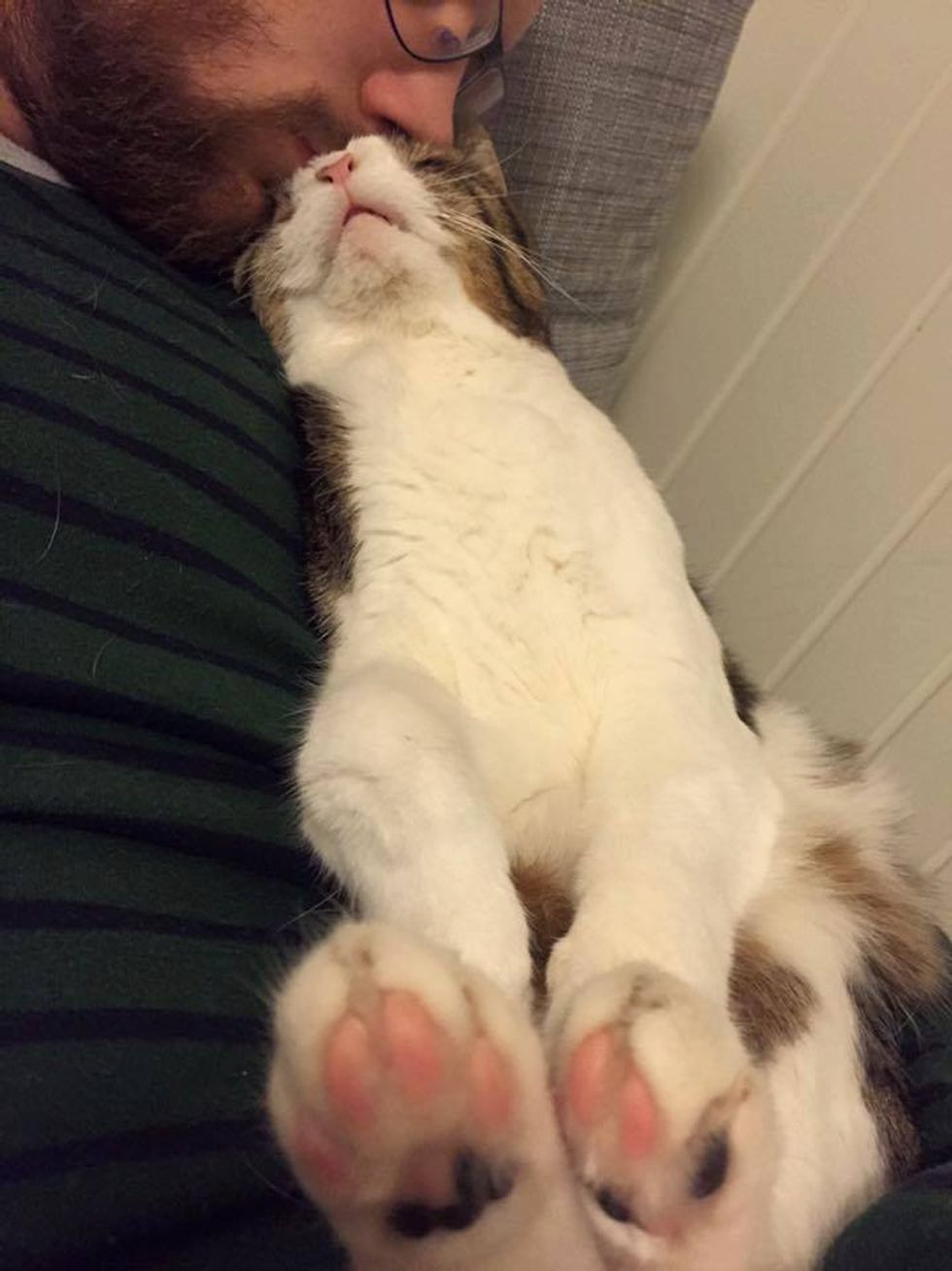 His favorite thing is to be held by his cat dad and cuddle with him for hours.