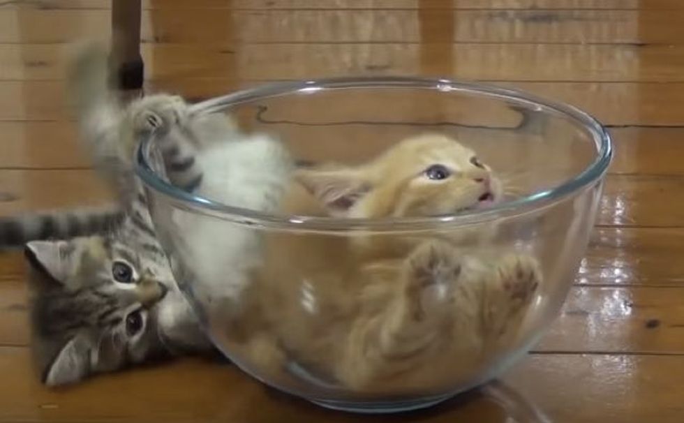 These three rambunctious kittens meet a large glass bowl, and soon they turn it into a supurr bowl!
