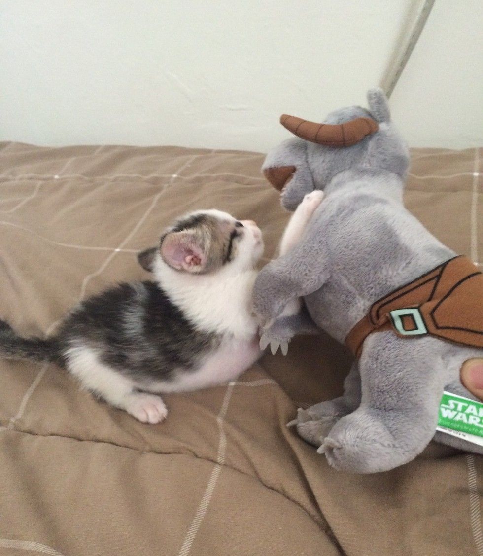 "One of the coolest things was watching her go from a shaking little alien creature to developing normal cat behaviors (scratching with her hind legs, stretching, cleaning herself etc.) without having any parents to pick them up from.