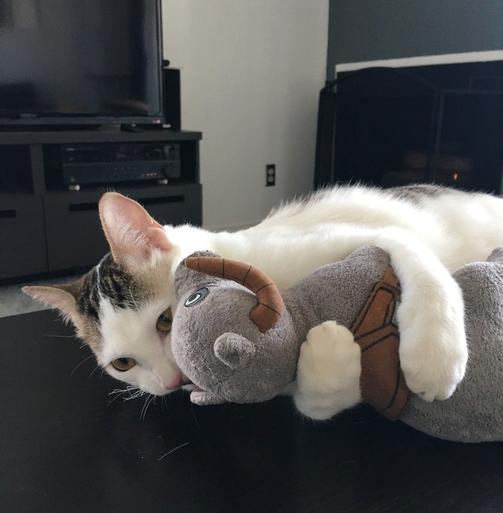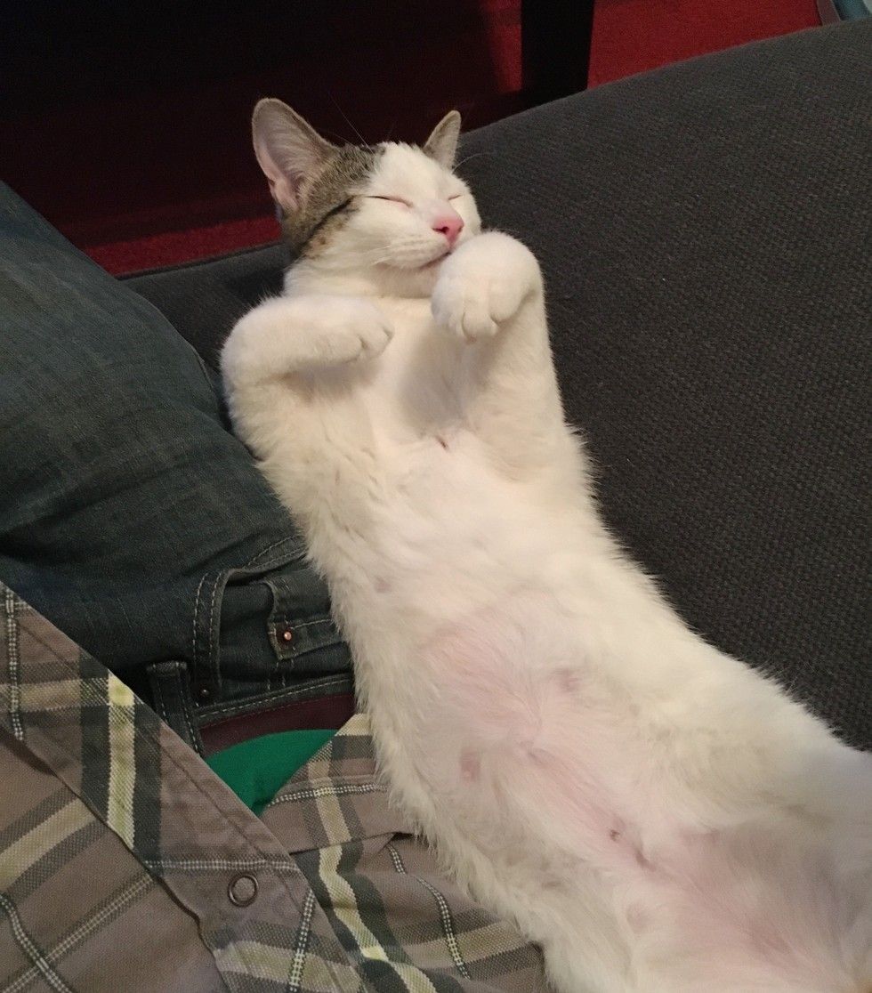 Snuggling with her human makes her a very happy kitty!