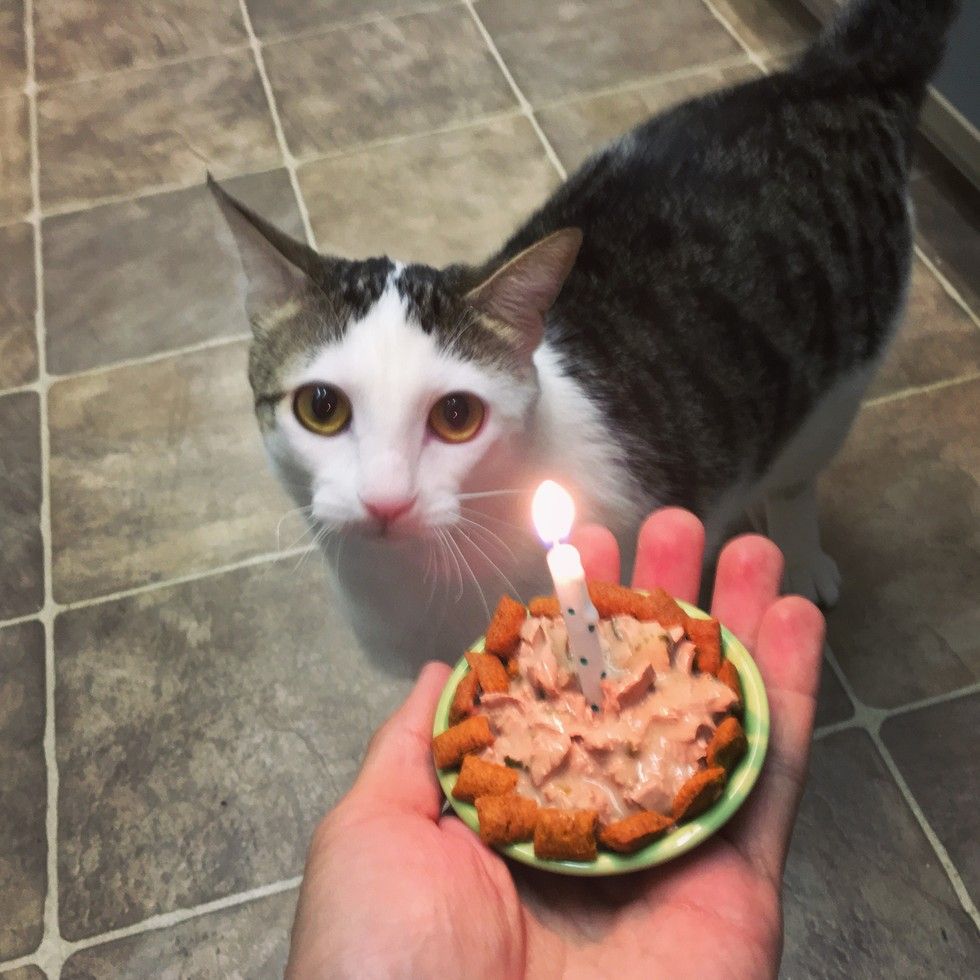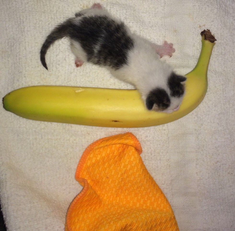 A tiny newborn kitten came into a person's life unexpectedly. They nursed her back to health, gave her a friend to cuddle with.... She became family.