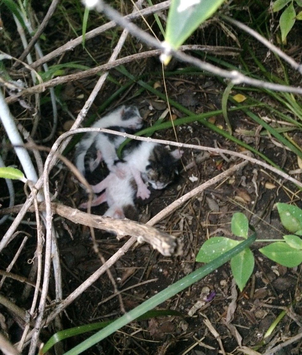 "One night, my neighbor and I noticed what sounded like strange baby birds chirping in a bush at our apartment complex. After a little investigation, jackpot... kittens!" imgur user arthisbeapirate said. "They were pretty deep in the underbrush and it was dark but there seemed to be three of them that looked to be only a day or so old."