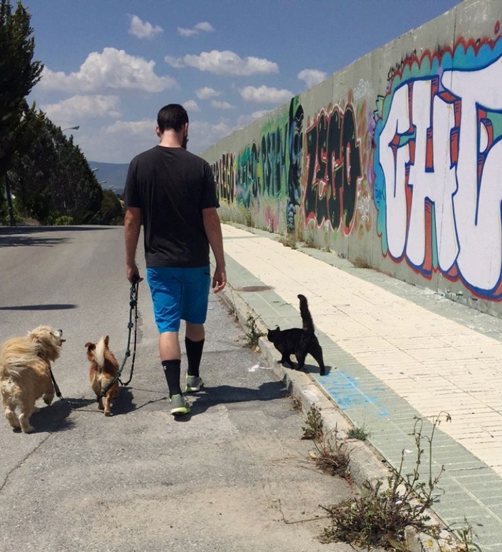 "We feel so grateful to have found her that day. She's definitely family and I can't believe she was just abandoned like that. My girlfriend loves all animals and whenever we go out she walks up to any dogs or cats that we see and pets them. We know we can't rescue all of them but we're glad we saved Petrol because now she has a great time hanging out with our other cats, playing with the dogs, and of course protecting us on our walks."