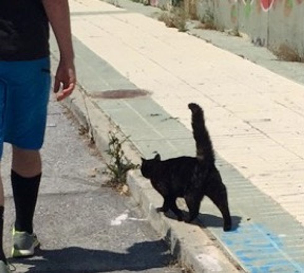 A couple rescued a cat covered in petrol from underneath a car. "Now every time we walk the dogs she goes with us and acts as though she's protecting us from everything."
