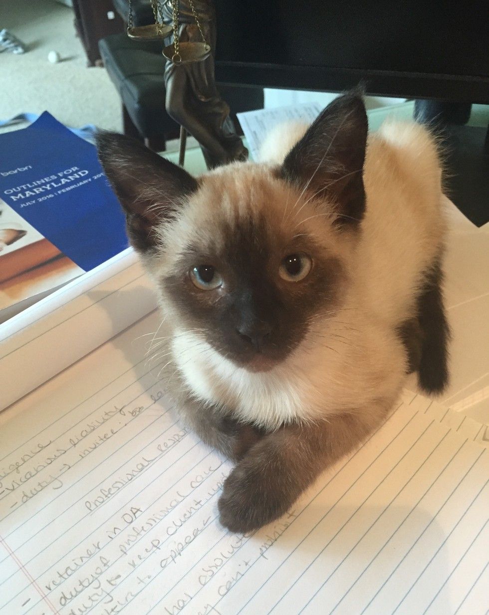 Every time they are on the computer, Yoda will come and sit on the desk and supervise them as they work.
