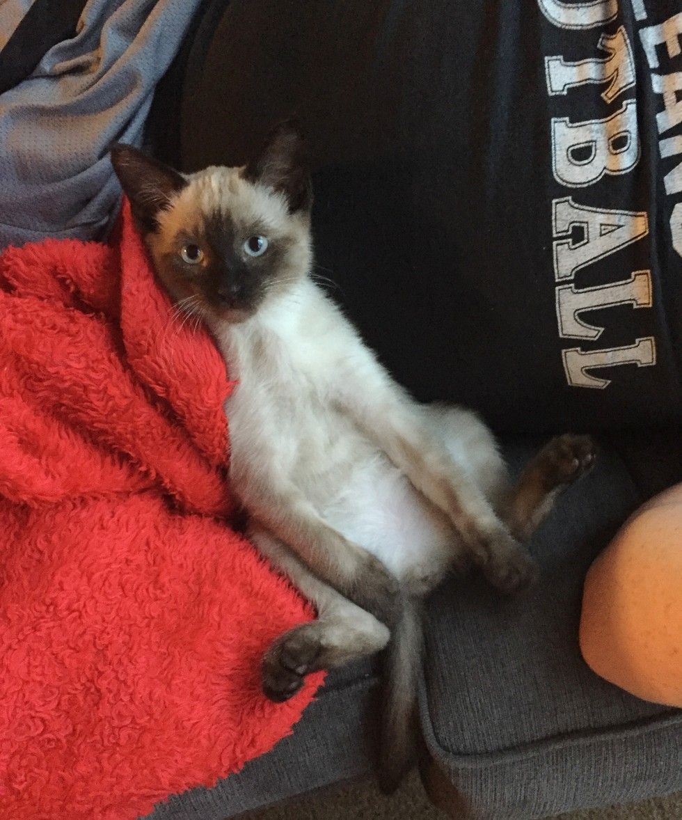 Smith's grandmother passed away the week before they found Yoda. The little rescue kitten came into their lives at the time where they needed much comfort.