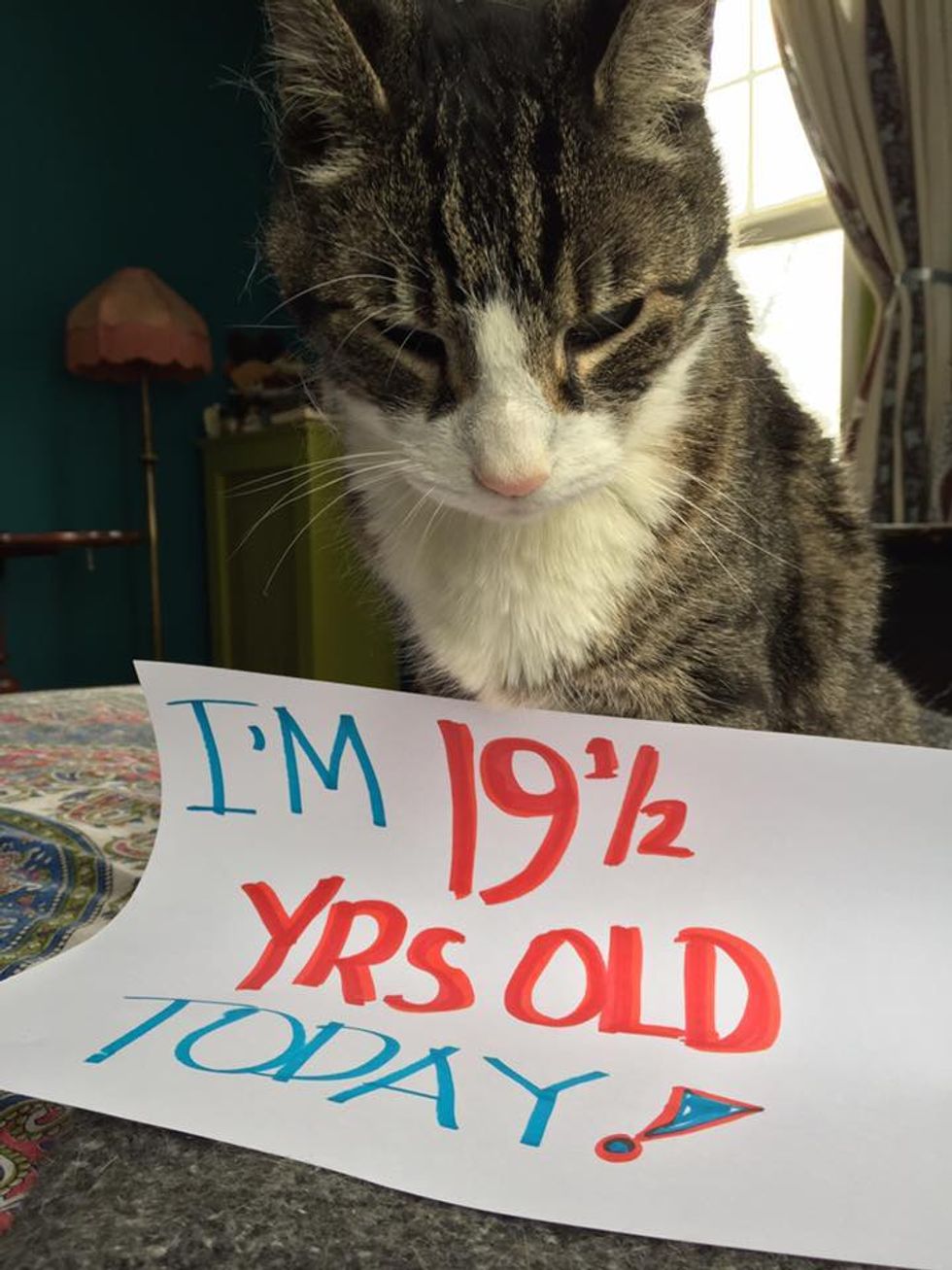 He ended up at the shelter when he was 18.5 years old. A kind-hearted woman rescued him and made him a promise that from that day on he would be loved and surrounded by friends and family in his twilight years, and they would be celebrating his every milestone!