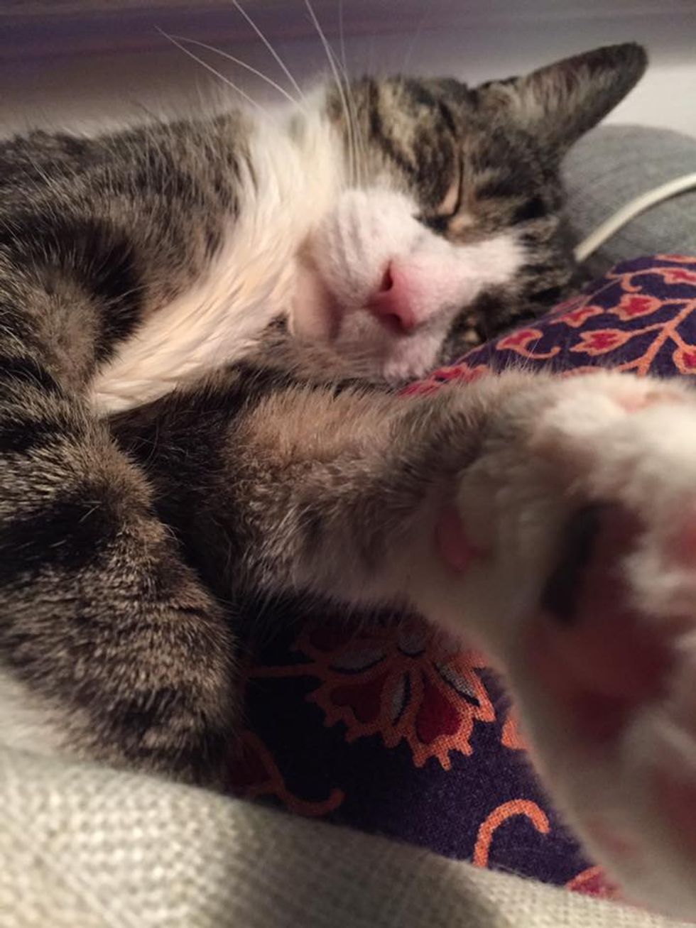 A loving home has brought back his beautiful smile! When he purrs, he gets all dreamy.