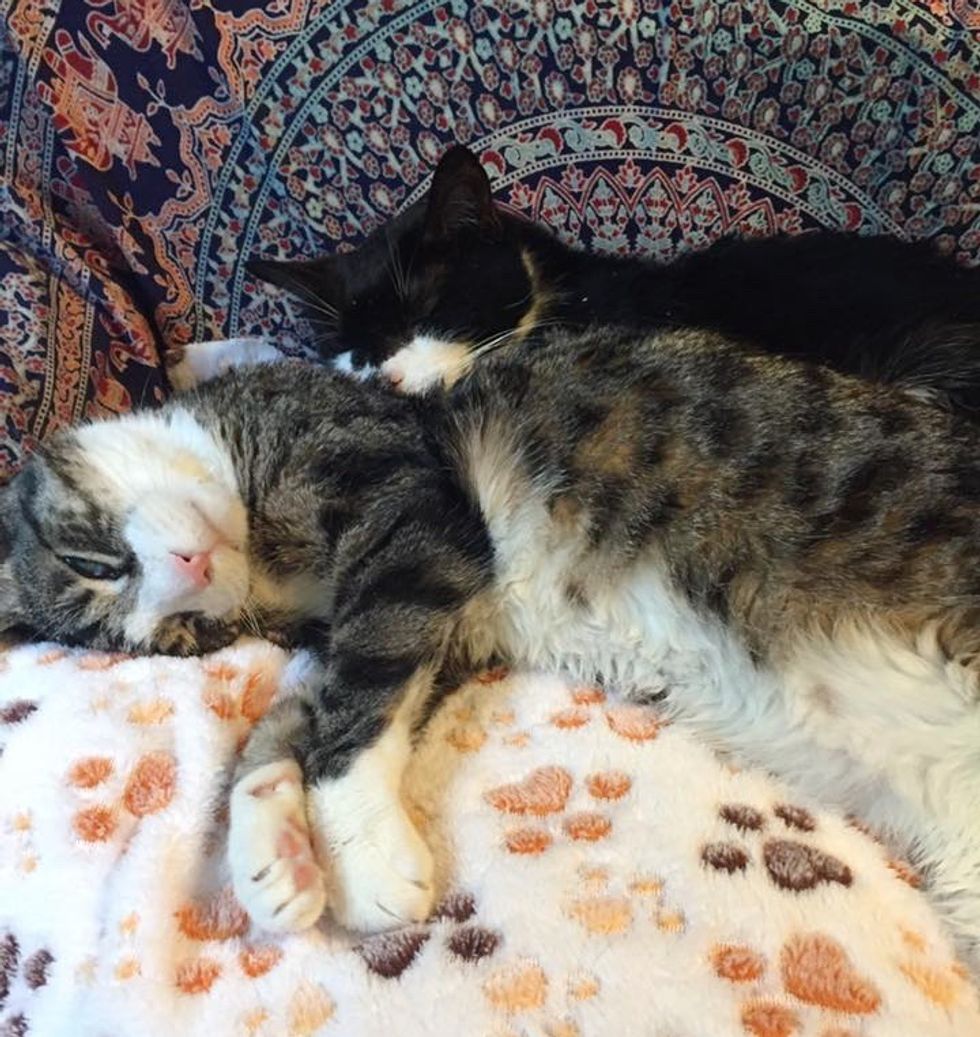 Kelley Peters, human mom of Justin the fire survivor, found Bobs and took him into her loving arms and gave him a comfortable home where there would be many furry friends to keep him company, so he would never be alone again.