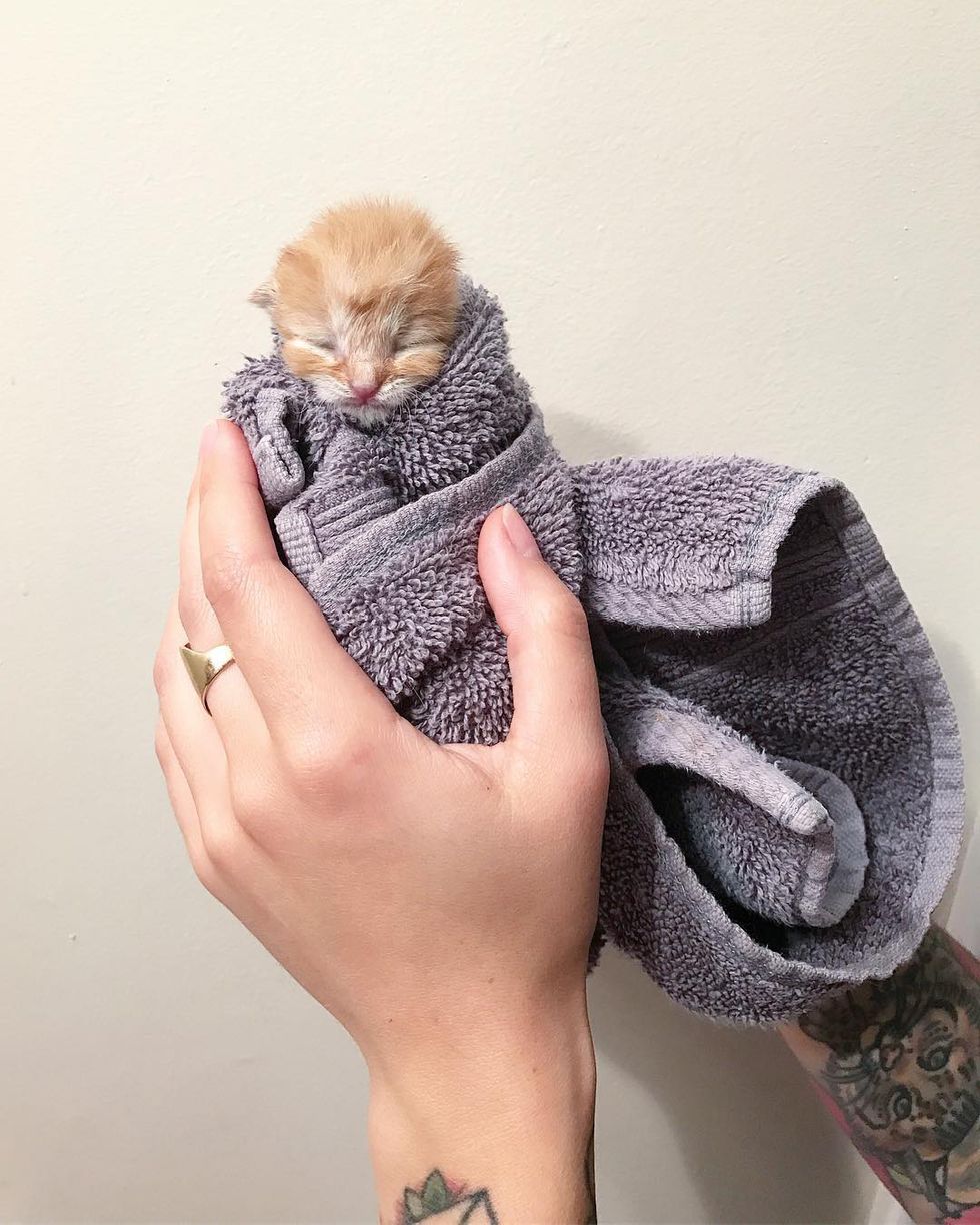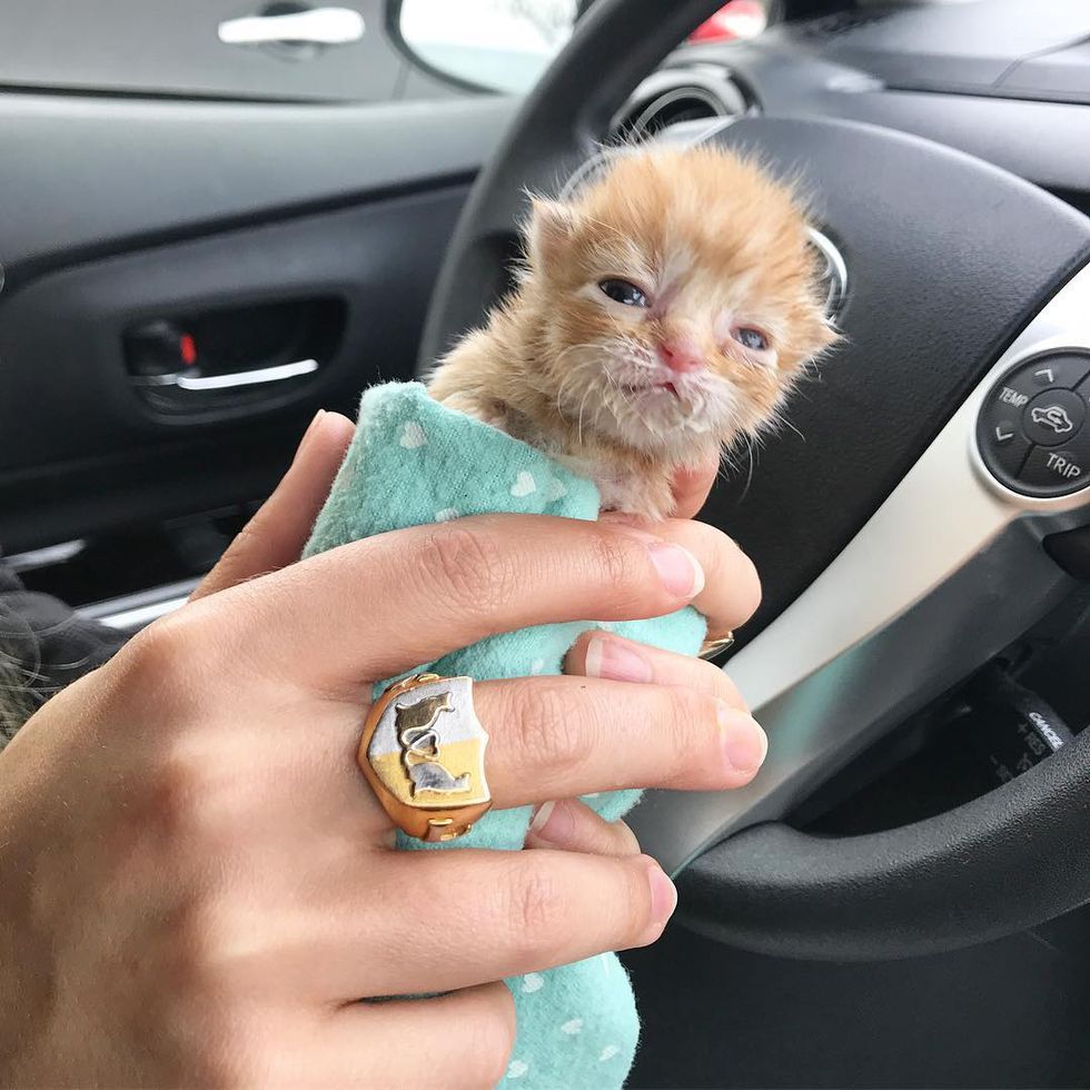 Hannah Shaw (@kittenxlady), an avid cat rescuer and founder of Kitten Lady, learned about the little one's plight and immediately went to her rescue.