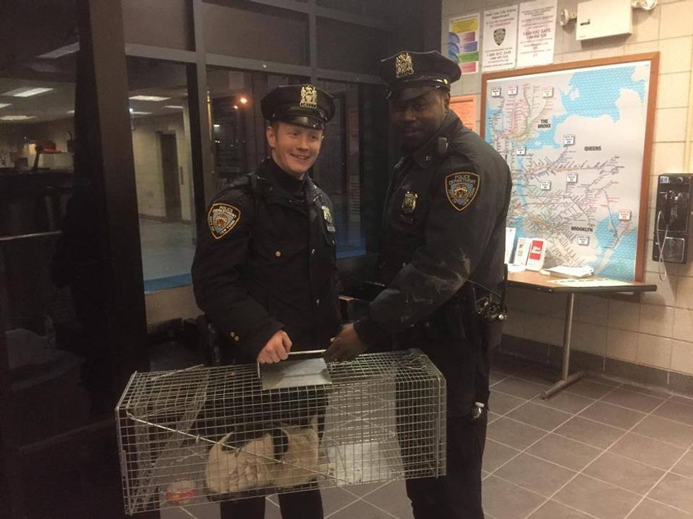 Local rescuer John Sibley provided a trap, and all through the night, the NYPD Transit Unit 12 came back periodically to check on it. The next day, volunteers and NYPD kept a watchful eye on the trap but the cat never came back until dusk - finally they got him!