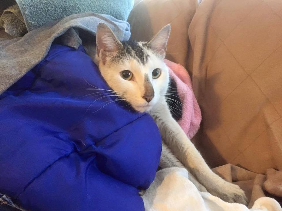 Besides a few minor cuts on the head, the kitty was doing fine.