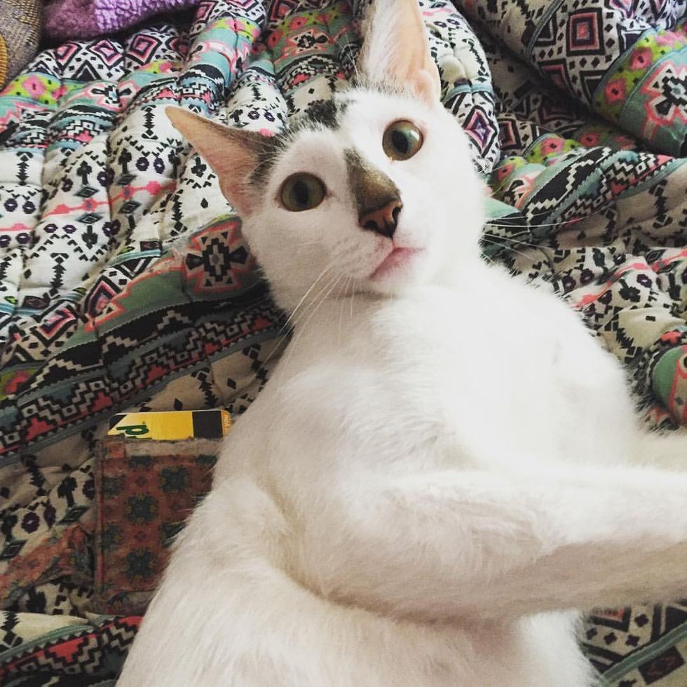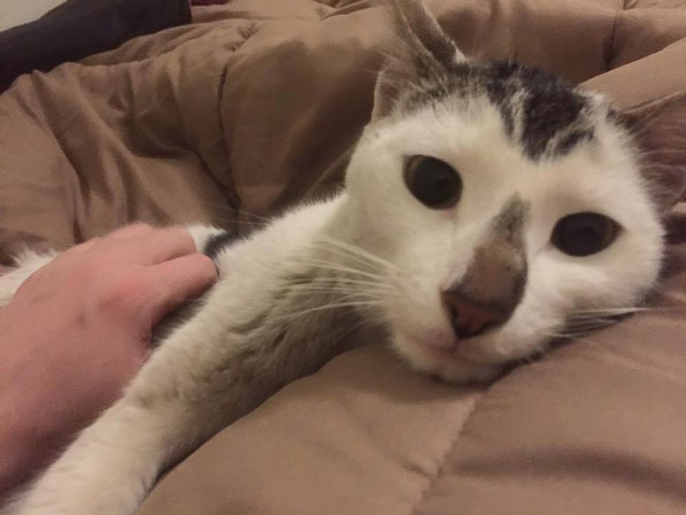 John took him to foster while he was healing. The sweet Subway cat was already giving headbutts and purrs.
