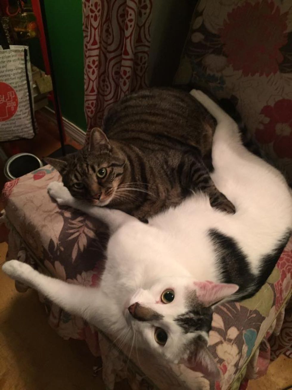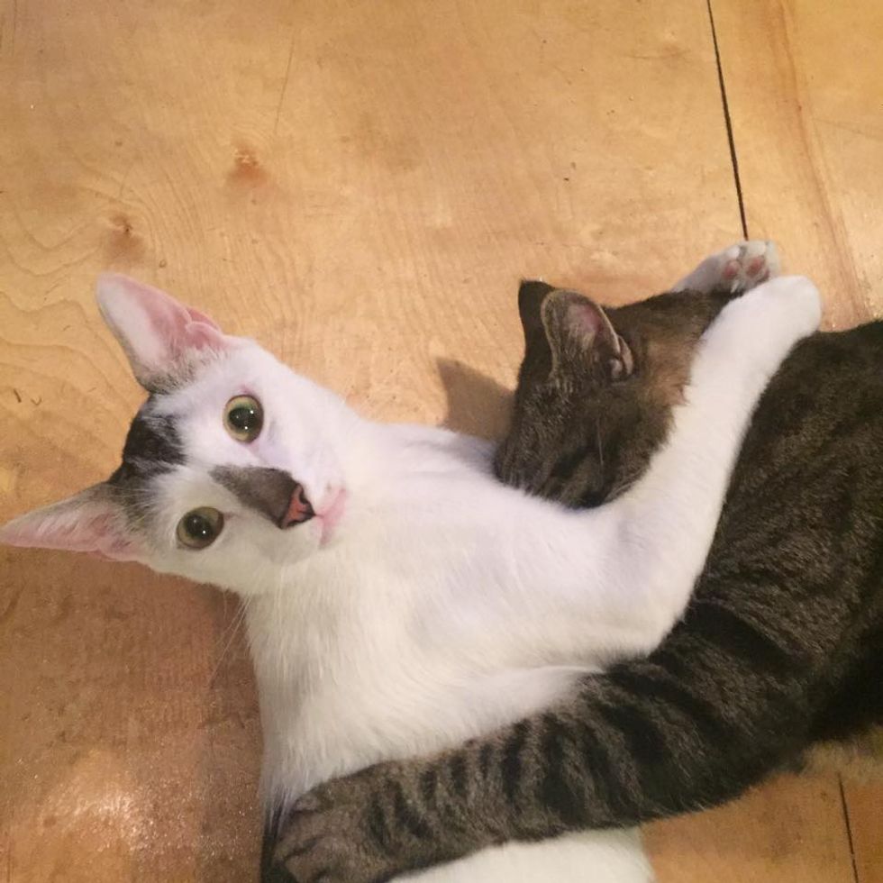 Subby bonded with his feline buddy Watson soon after he moved in.