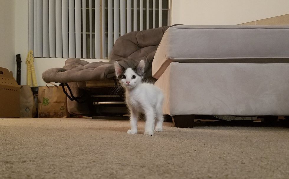 Reddit user NO_NOT_THE_WHIP saw the little guy and was smitten with those disproportionally big ears to his tiny body. They took the kitten home, and the little fur buddy's life began to change...