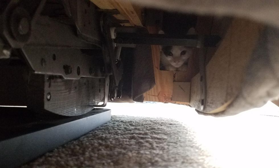 As soon as Aava arrived in his new dwelling, he immediately took refuge under a chair and refused to come out. "When I first brought him home he hid here all day," they said.