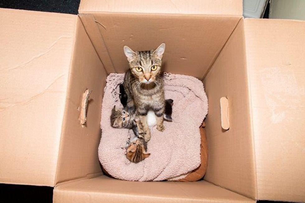 They found a discarded box labelled 5-week-old kittens inside. When they opened it, they were surprised by what they saw.