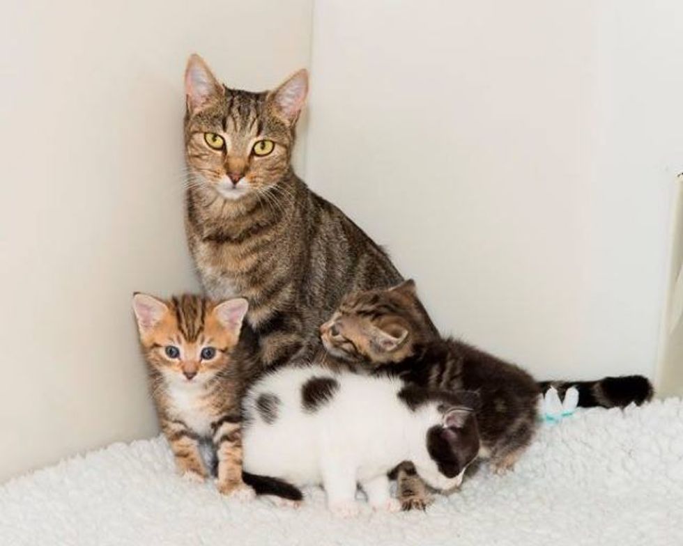 Cats Protection Bridgend Adoption Centre writes: "This lovely mum and her kittens were abandoned in a box in Church Village a couple of weeks ago. They are doing very well in our care. We have called the kittens Pumpkin, Trick and Treat, they are all adorable."
