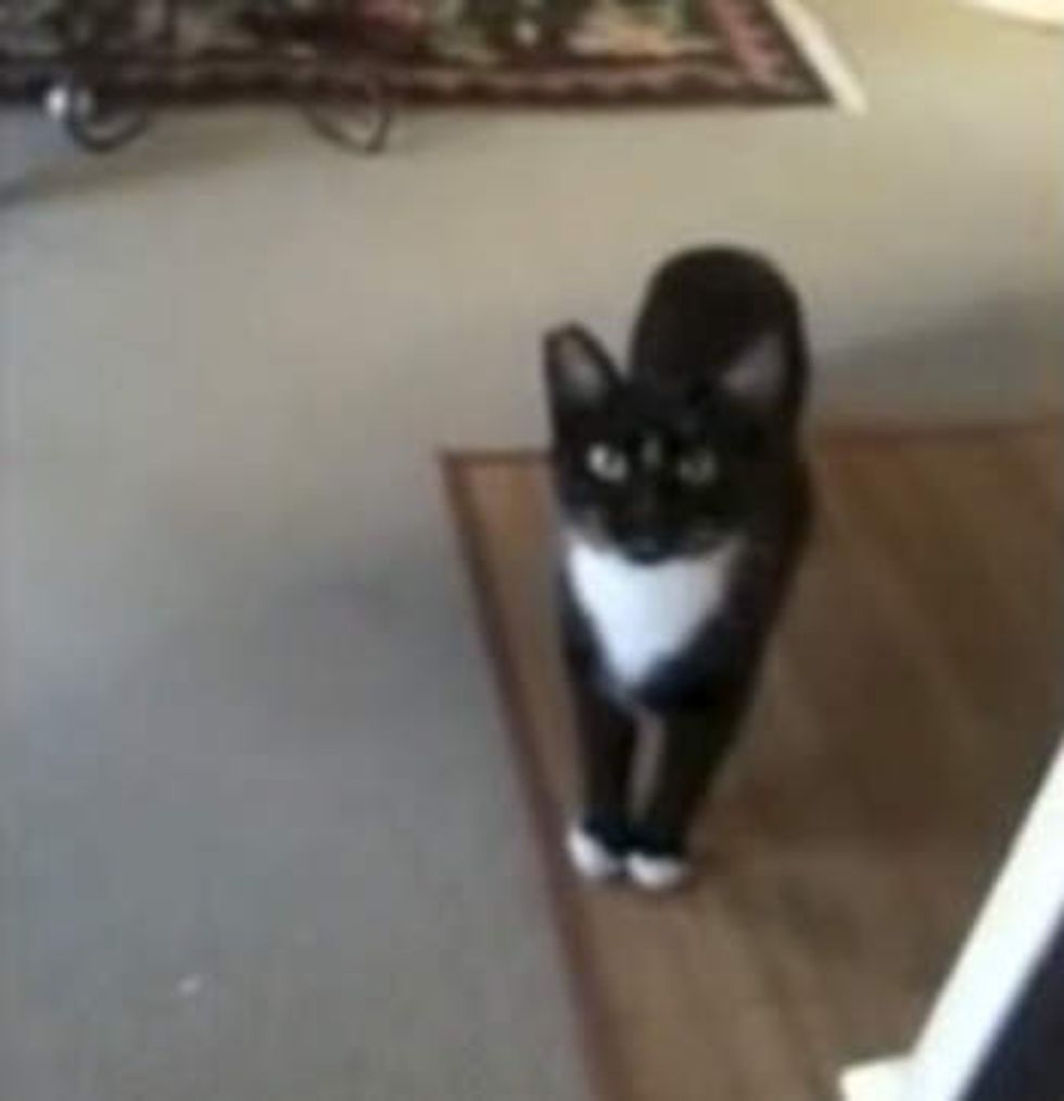 She was said to be too wild to be brought indoors... But the kind lady in this video never gave up hope. She fed and played with the kitty every day. Here's the kitty visiting her human at her door.