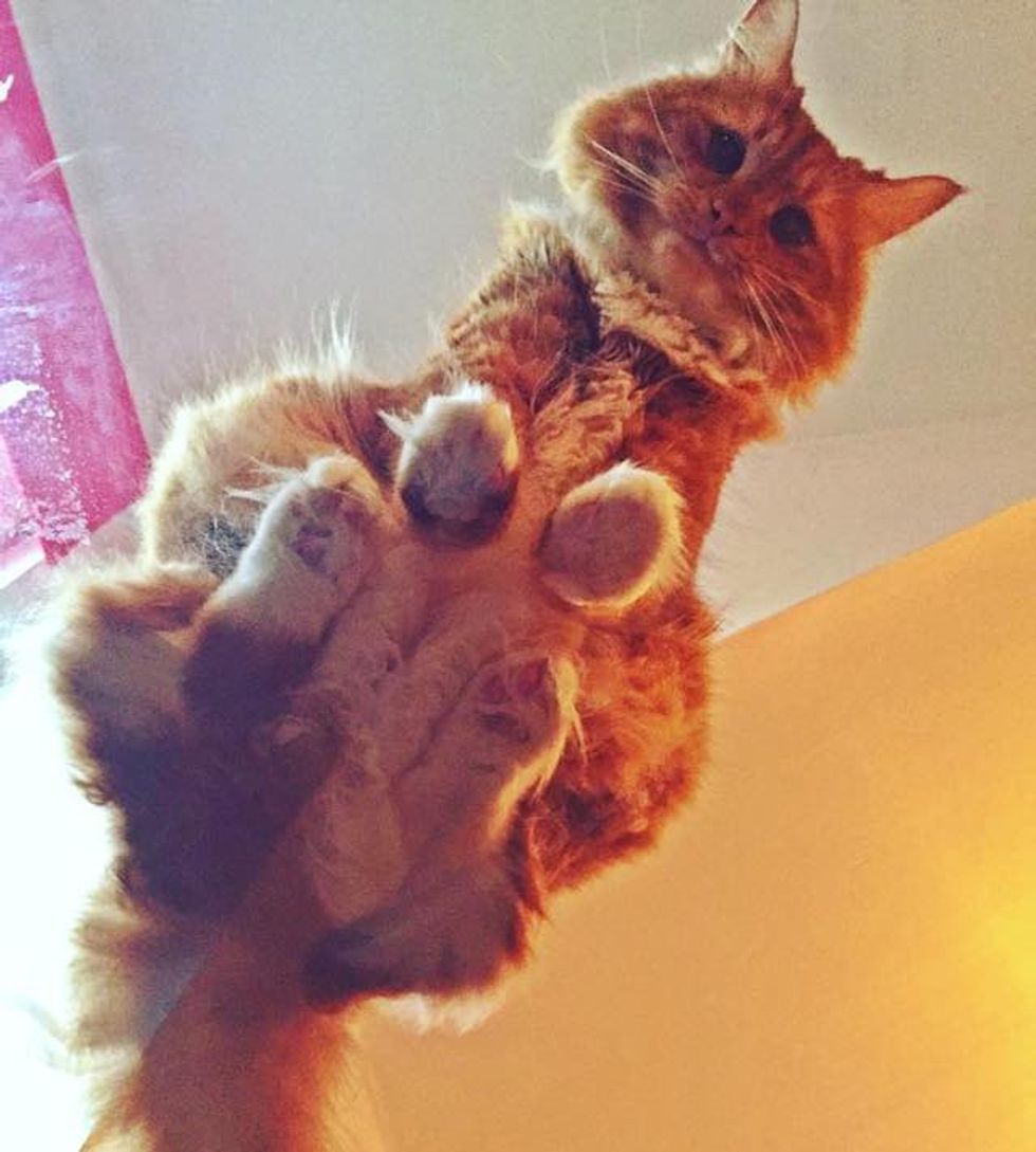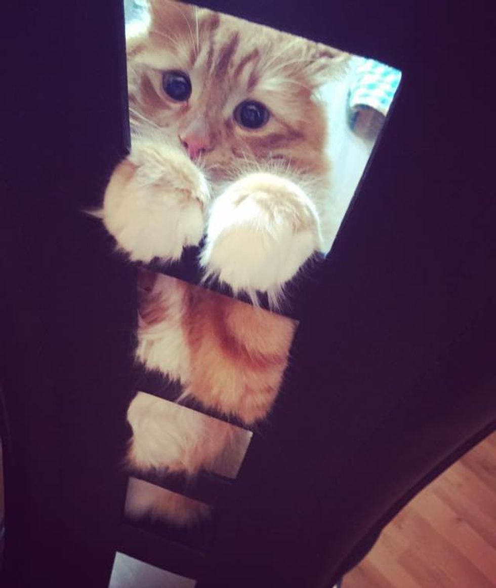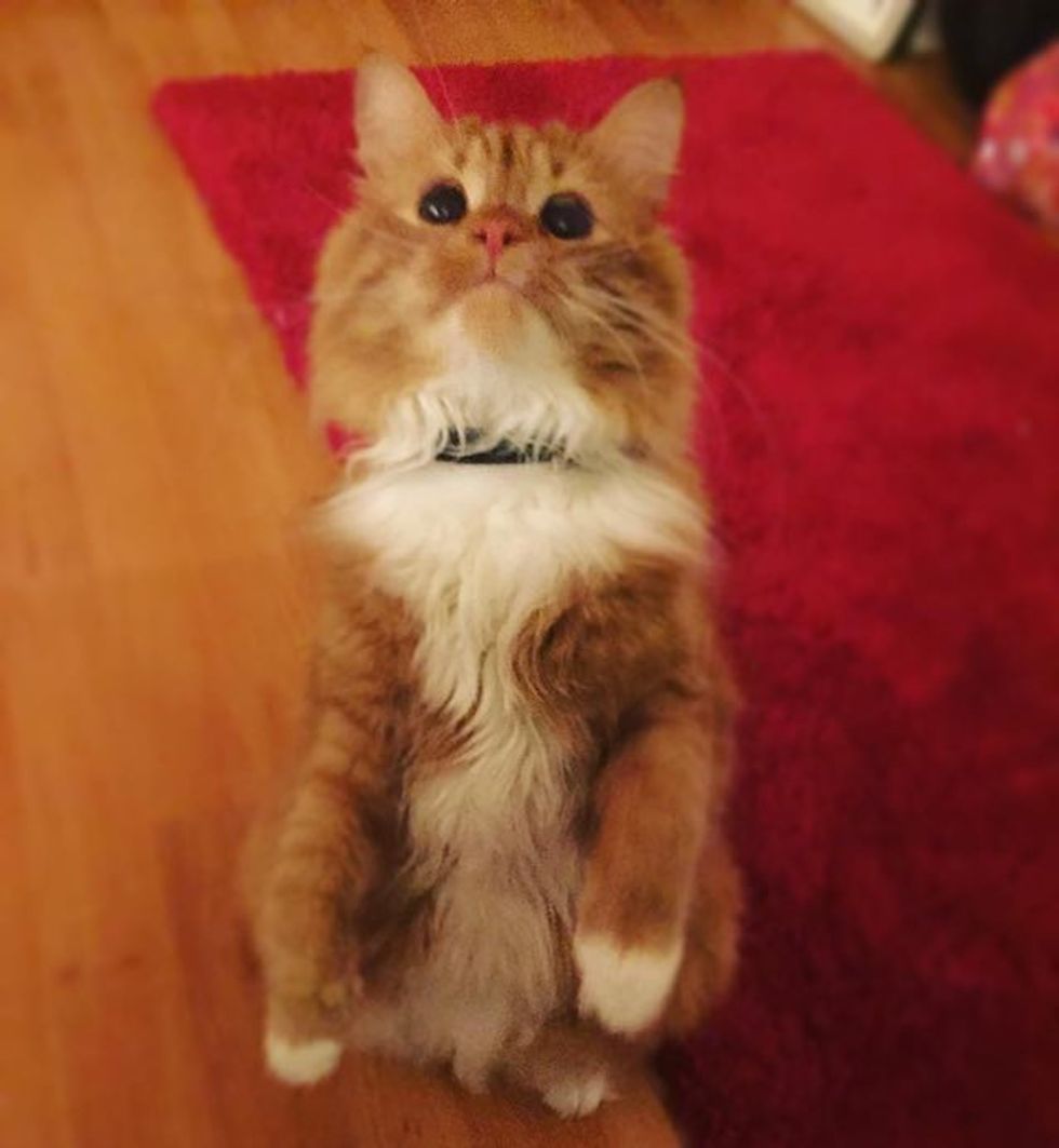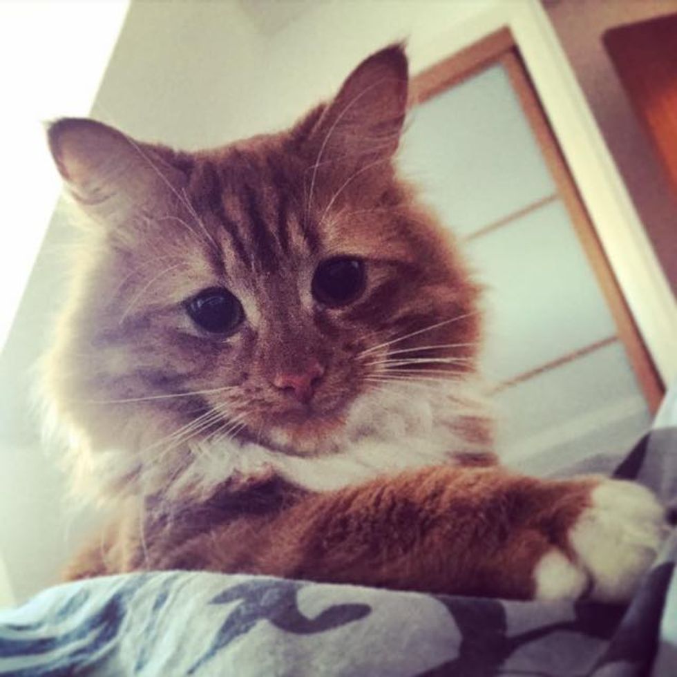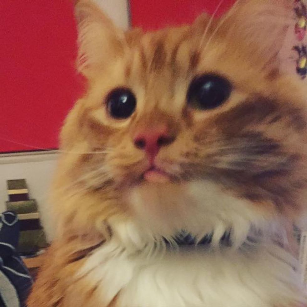 This fluffy ginger cat has a pair of perpetual begging eyes that are hard to resist. He does this whenever he wants treats, cuddles and love which is all the time :).