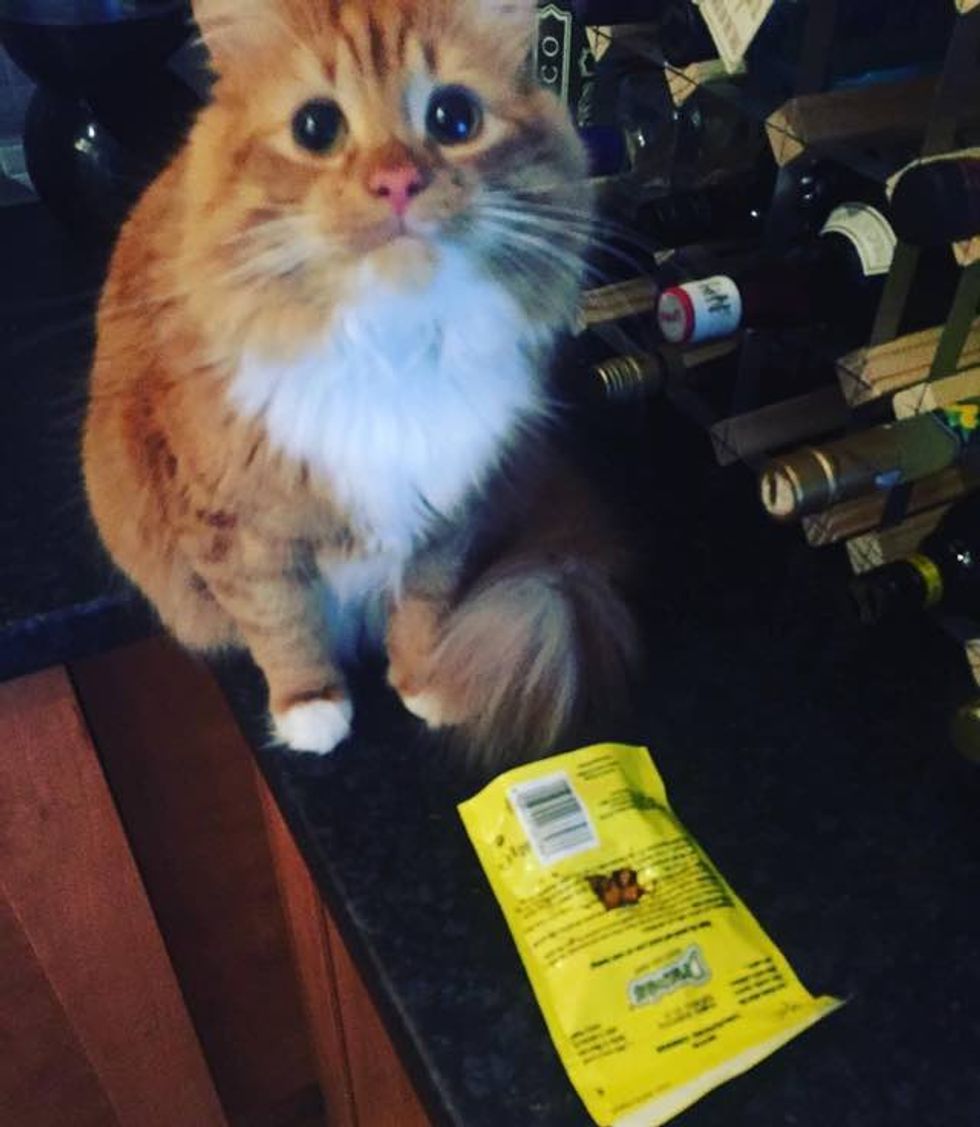 "He absolutely loves treats, his favourites are dreamies, I've often woken up in the morning to find a clawed open packet!" Kerry to Love Meow.