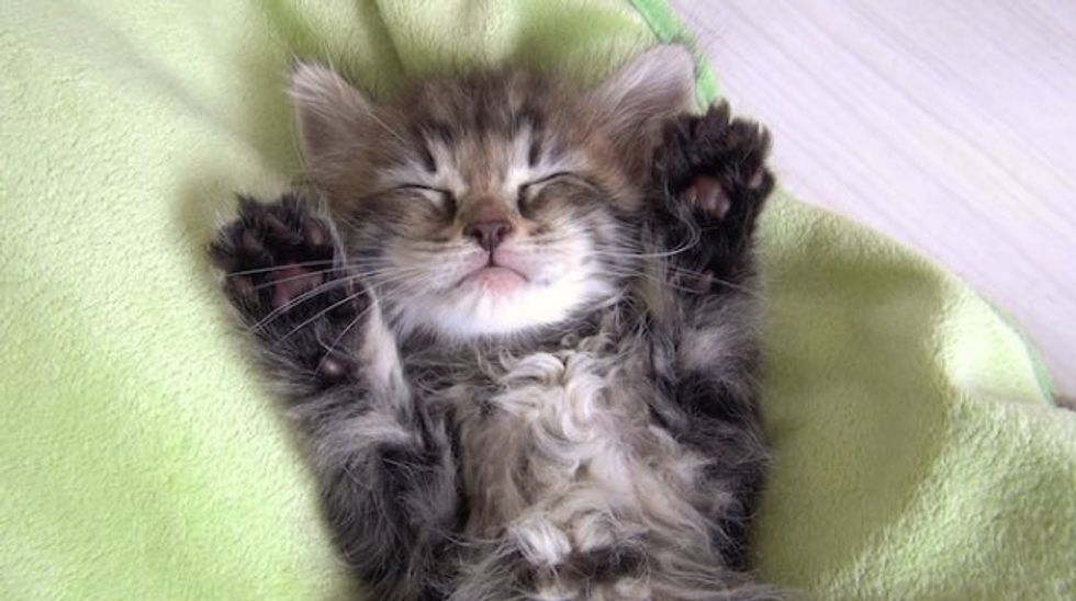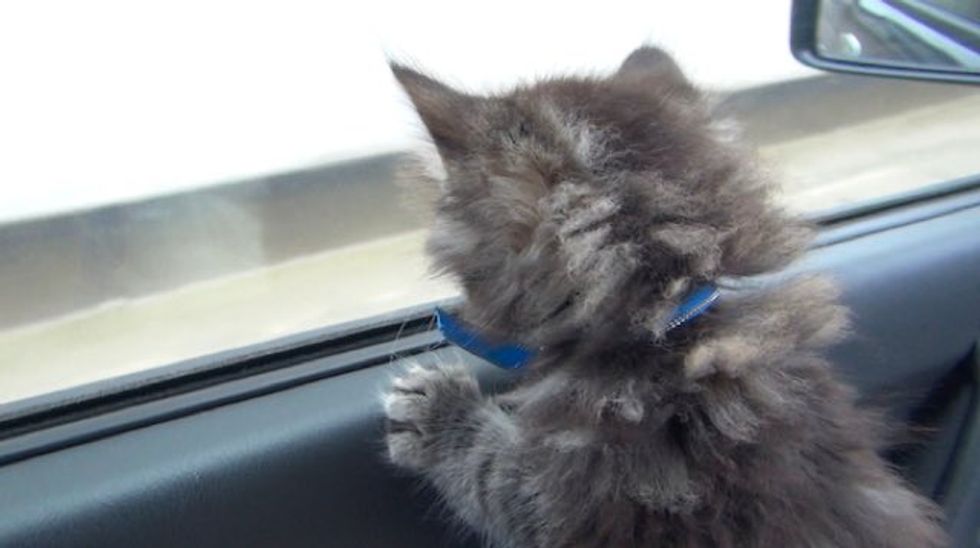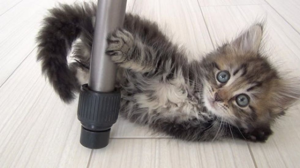Meet Osamu, a two-month-old kitten. This is his first day in his forever home. Already he knows how to cat.