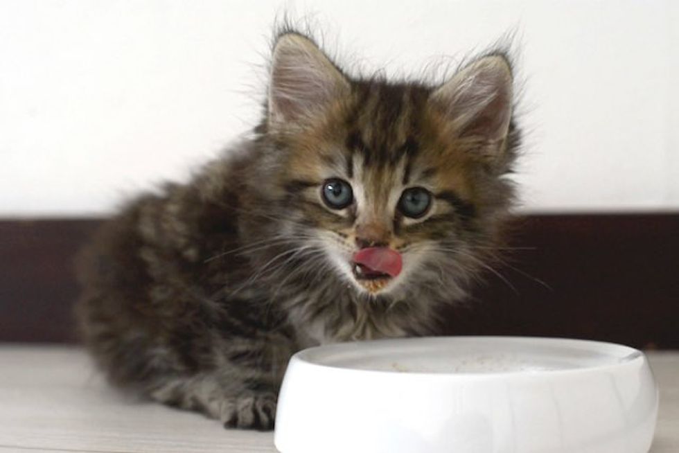 His first meal at his forever home! "Nom! Nom!"