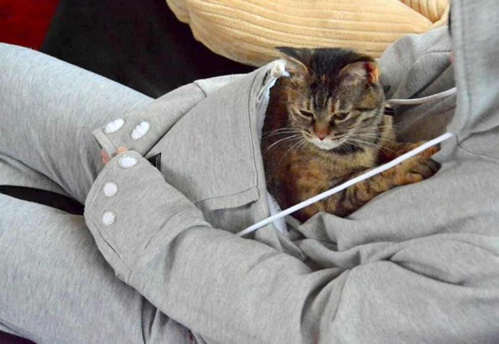 Ok, maybe this ginger cat is a bit confused. After all, not every cat is a lap cat, but if you have a lap cat who loves cuddles, this hoodie may just draw your beloved cat closer to your heart.