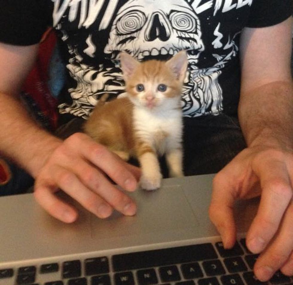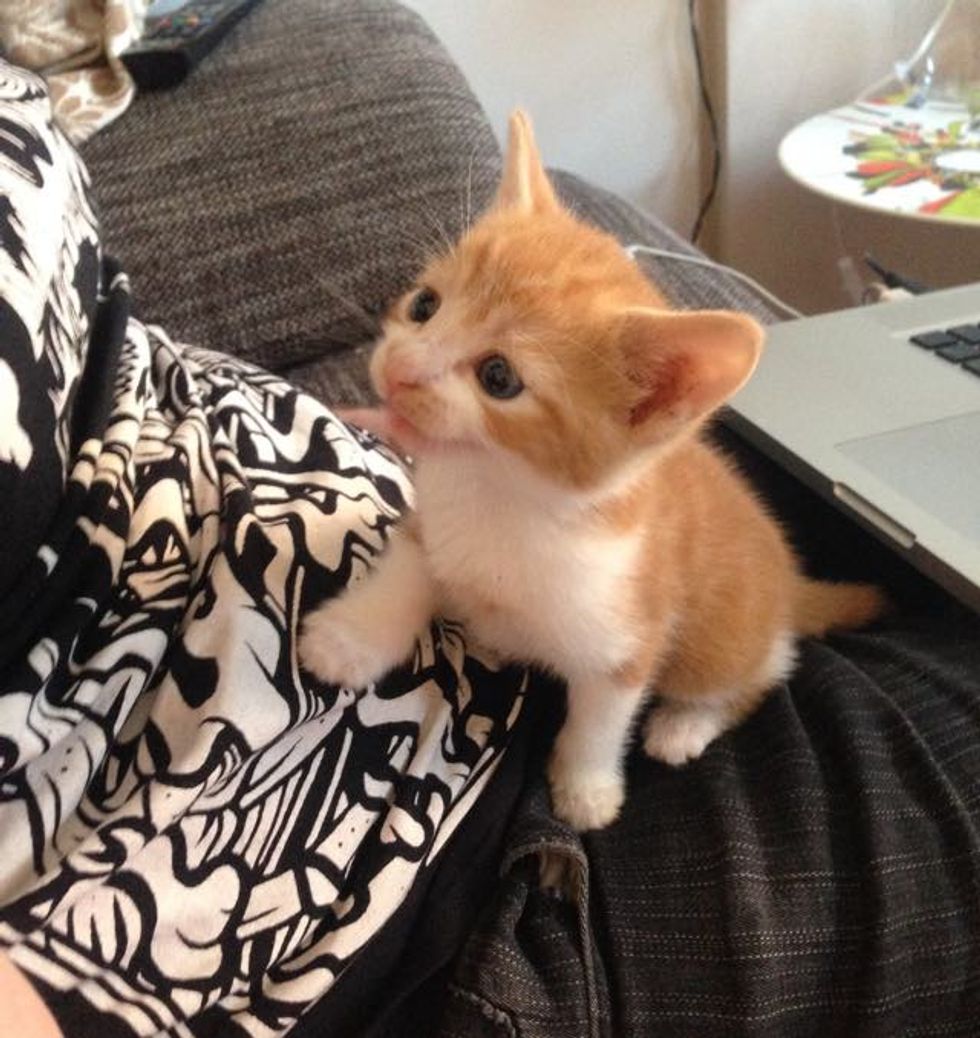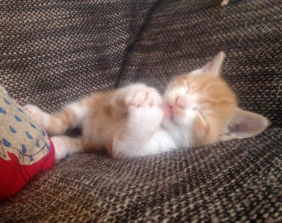 The day after the rescue, he took the kitty to the vets and they found out that he was six weeks old. "Day 2 is a totally different kitten. Just been climbing on the book shelf doing his thing, ate loads of kitten food and been playing with his tail? I thought only dogs did that but Adventure, he breaks all the rules," David said.