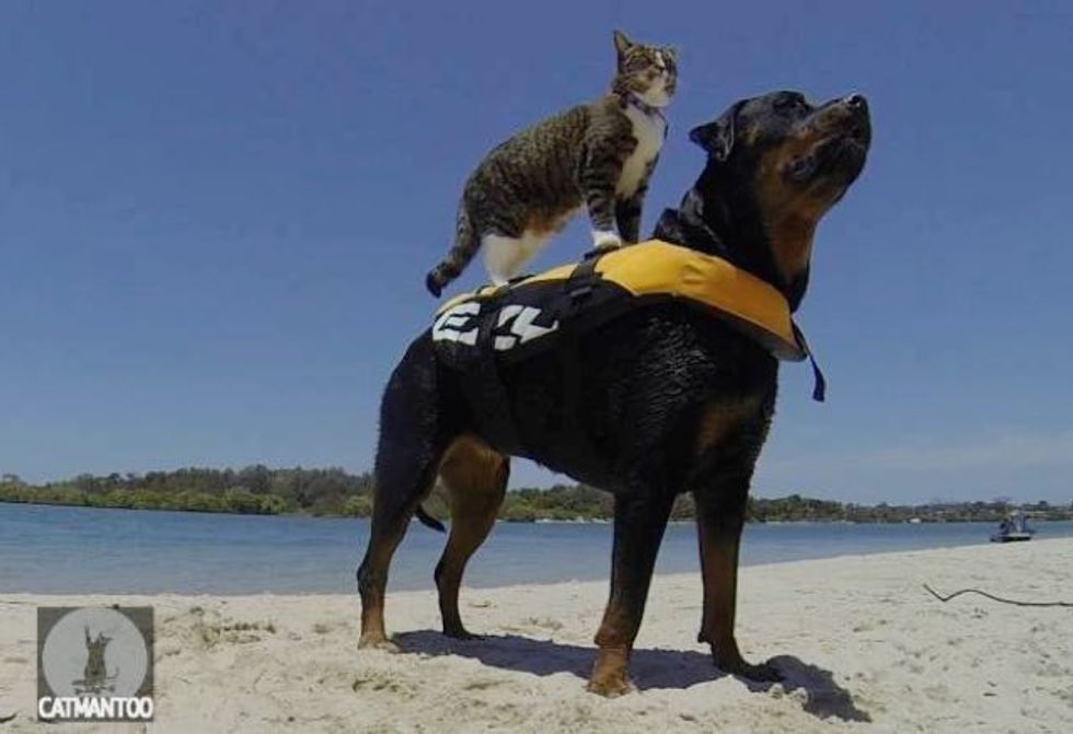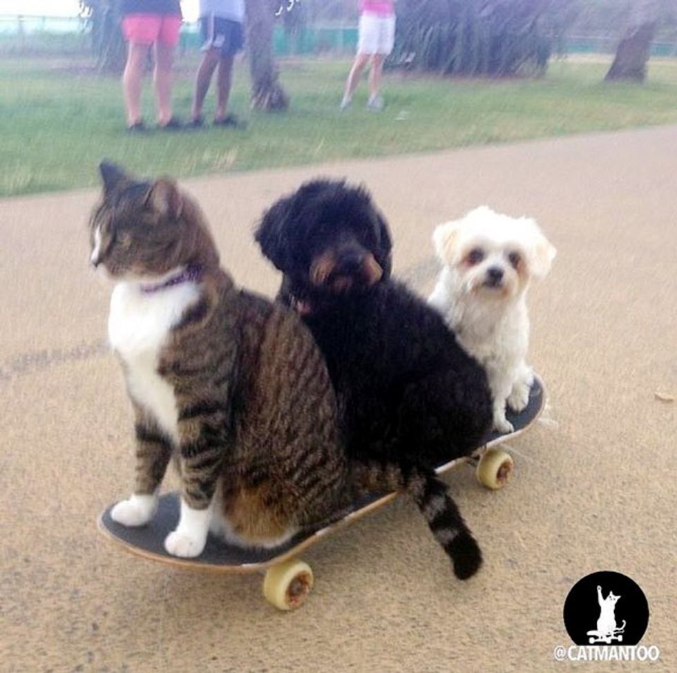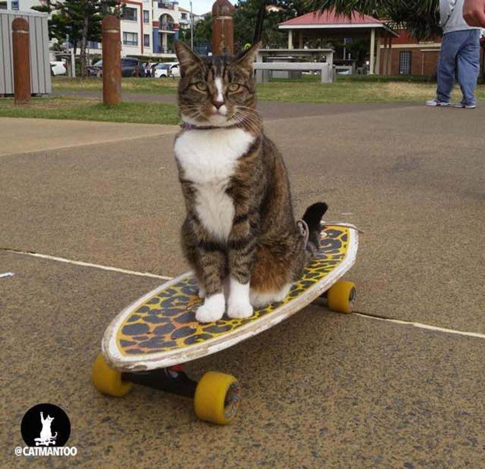 Didga, a tabby cat, grew up with a lot of dogs but she's outshone them with her natural talents. She can skateboard, surf, swim and so much more.